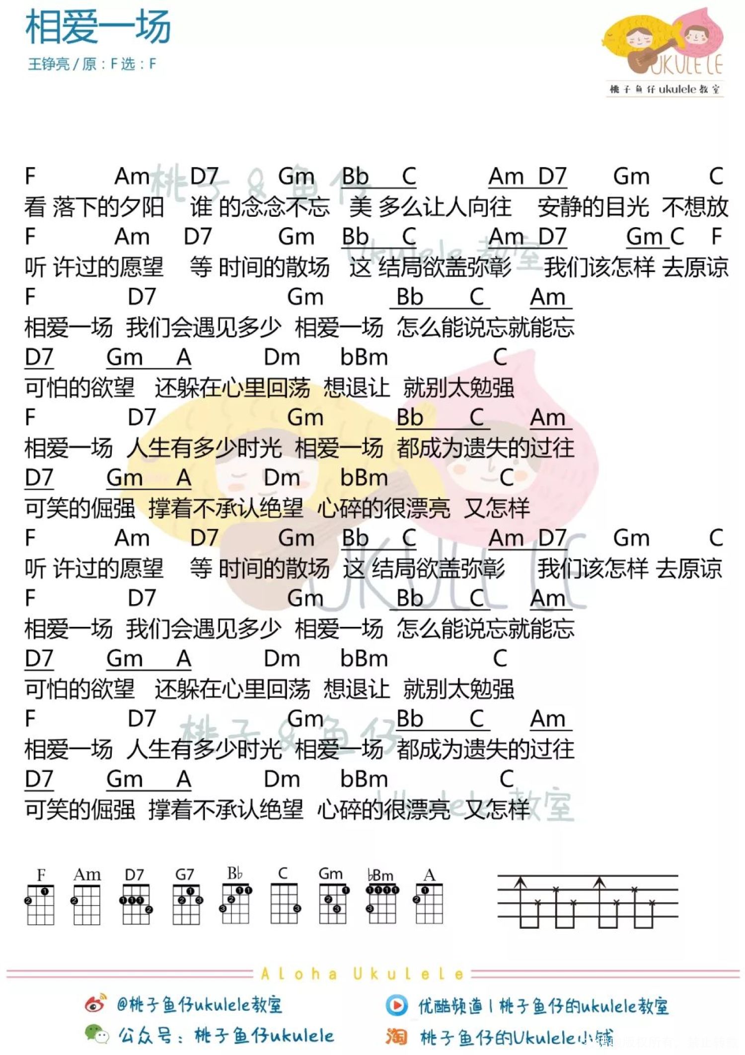 曲谱介绍: 《相爱一场》尤克里里弹唱谱