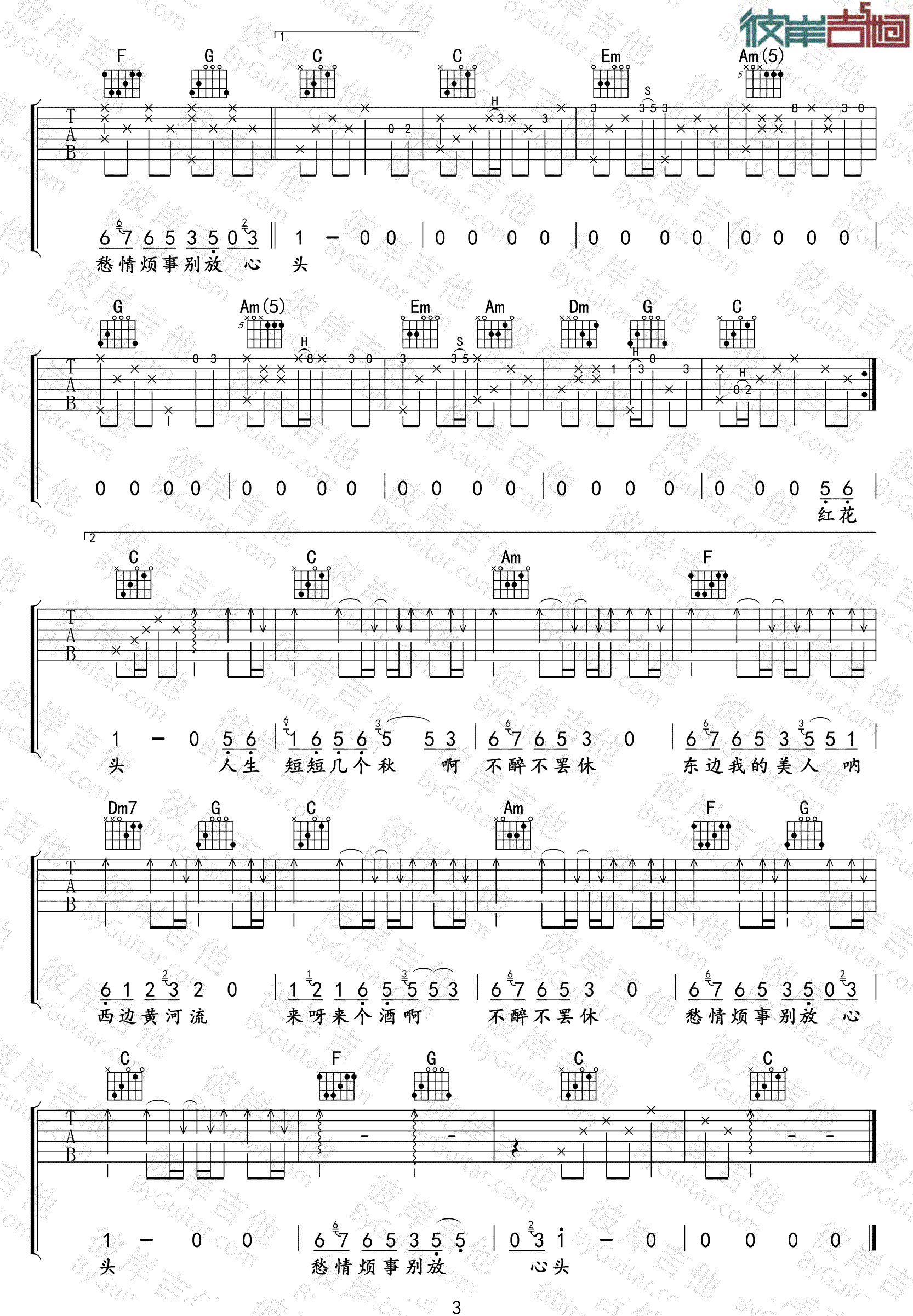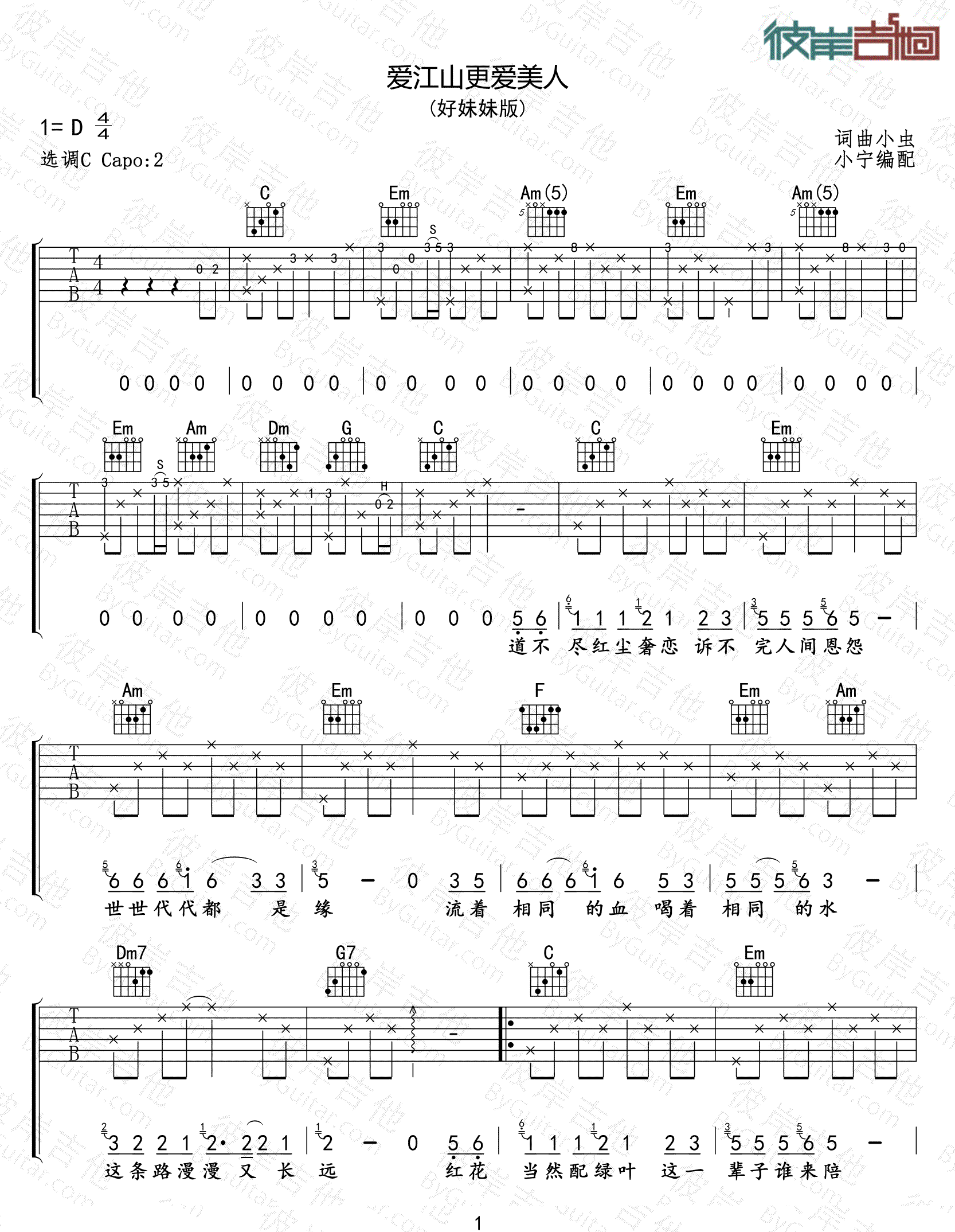 曲谱介绍: 好妹妹乐队《爱江山更爱美人》吉他弹唱谱,采用C调指法编配,共有3张高清图谱。