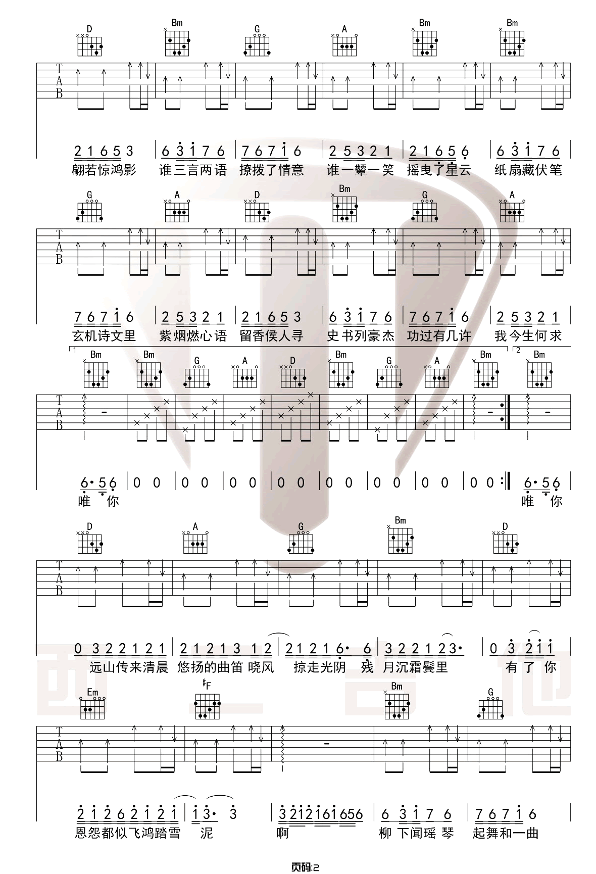 当前位置:琴谱网>吉他弹唱>惊鸿一面