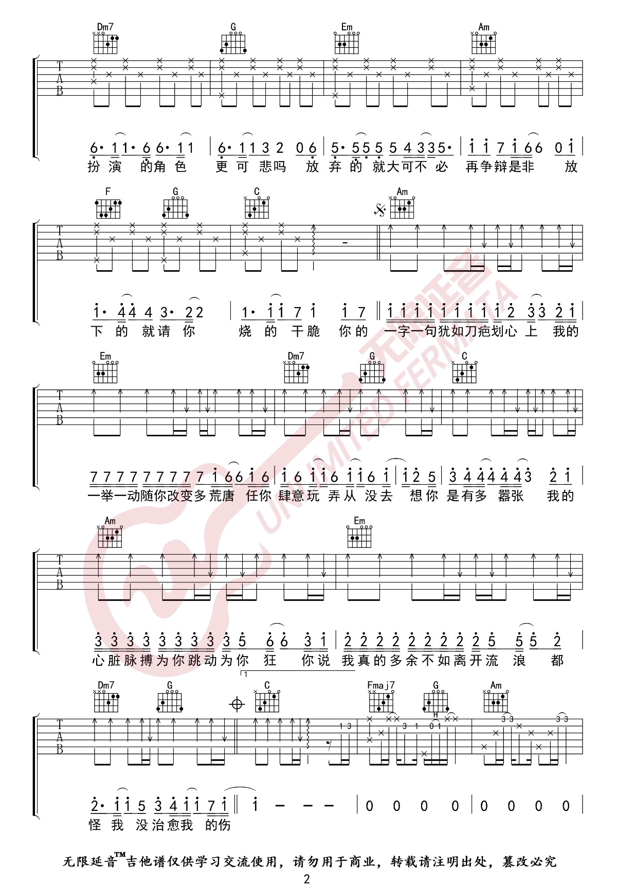 曲谱介绍: En《嚣张》吉他弹唱谱,采用C调指法编配原版,共有3张高清图谱。