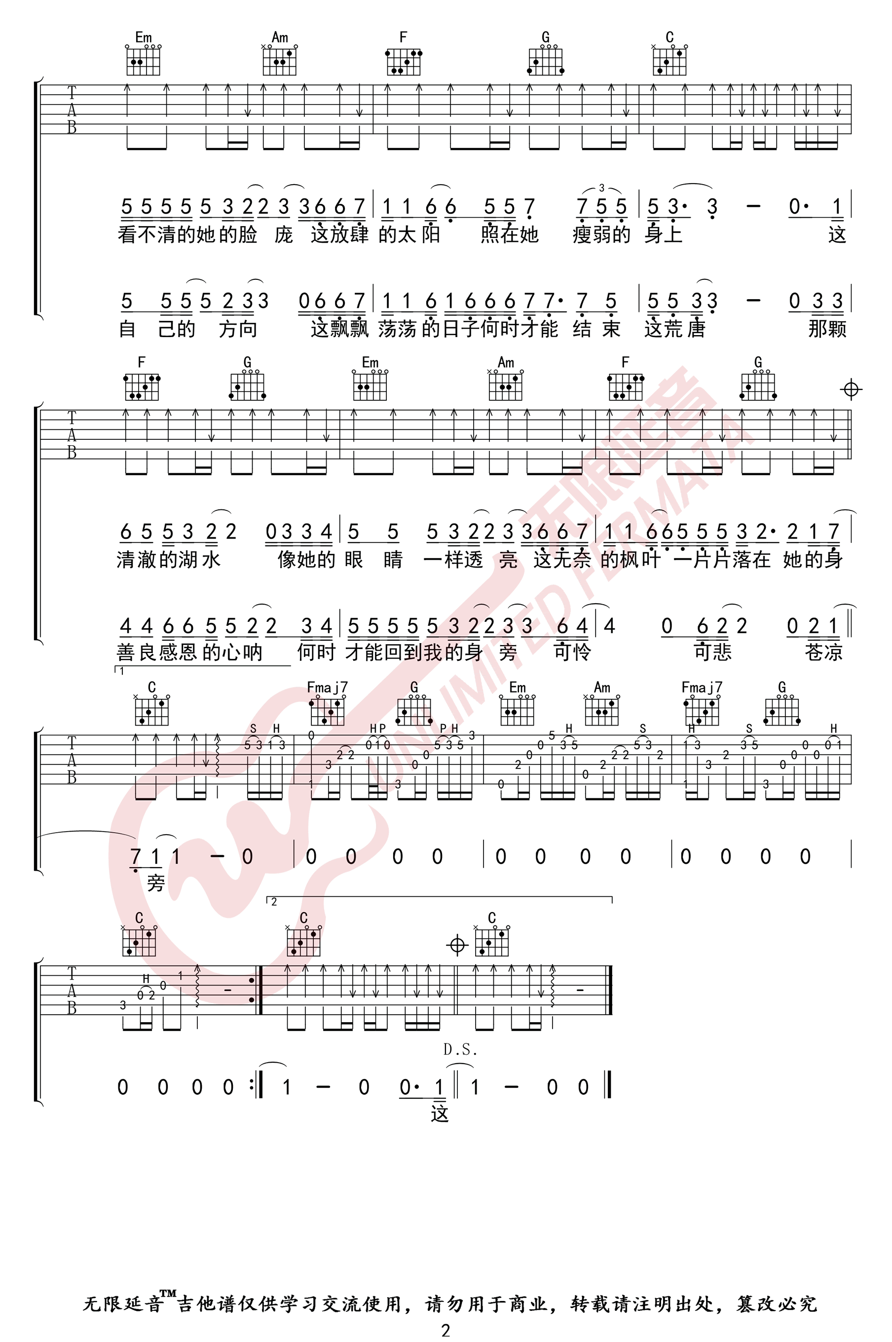 曲谱介绍: 隔壁老樊《初秋和你》吉他弹唱谱,采用C调指法编配原版,共有2张高清图谱,免翻页排版设计。