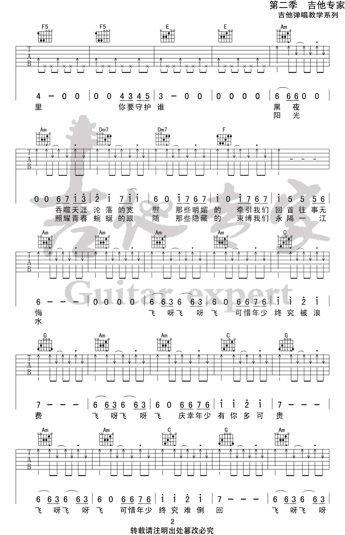 曲谱介绍: 造乐团《少年的你》吉他弹唱谱,采用C调指法编配原版,共有3张高清图谱。