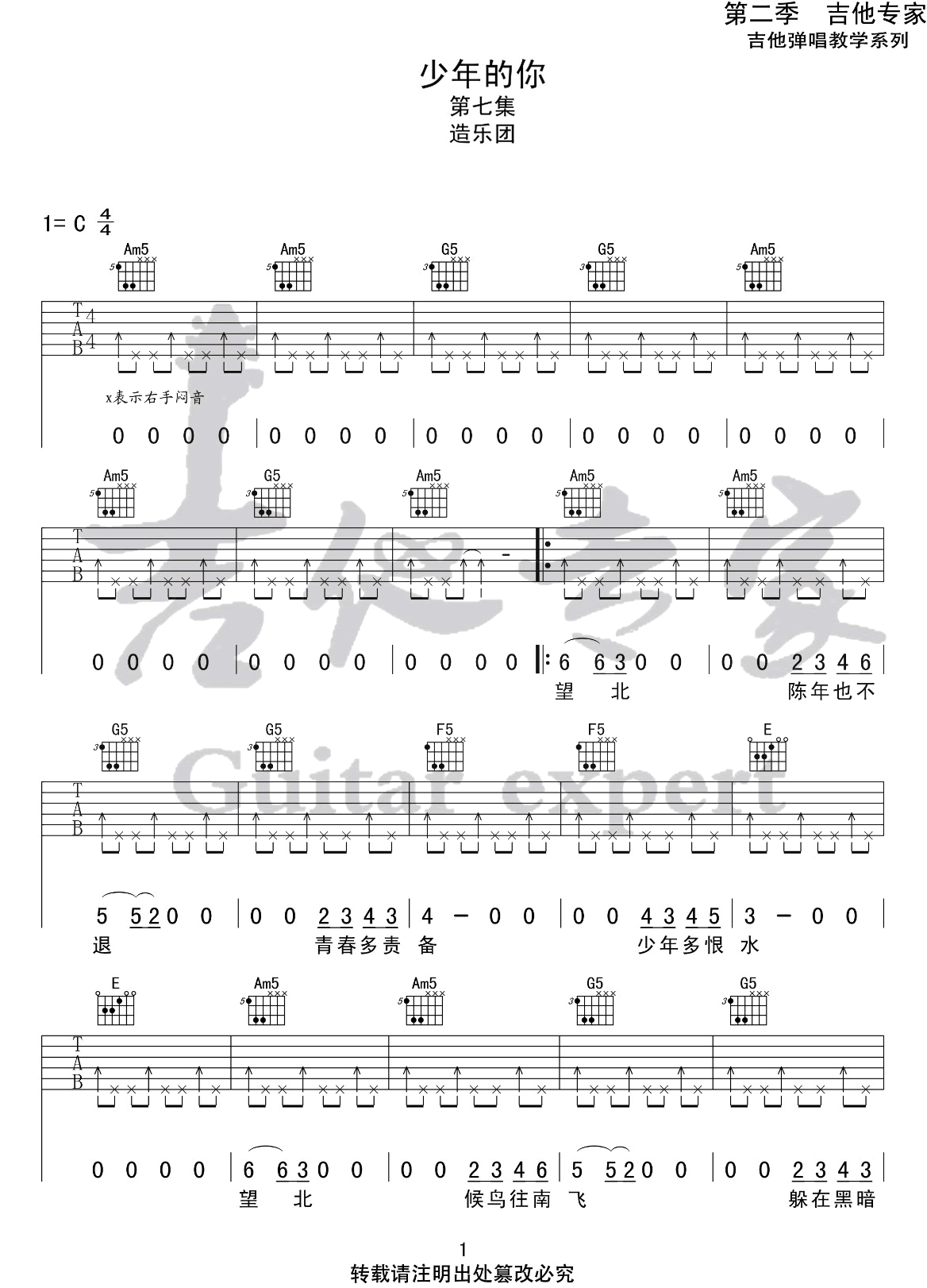 少年的你吉他谱 - 造乐团 - C调吉他弹唱谱 - 原版