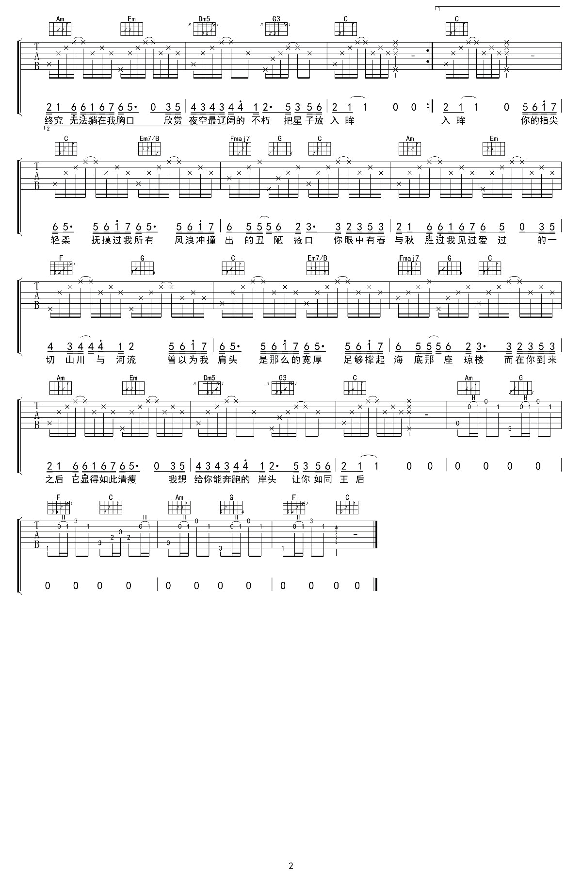 曲谱介绍: 周深《化身孤岛的鲸》吉他弹唱谱,采用C调指法编配原版,共有2张高清图谱,免翻页排版设计。