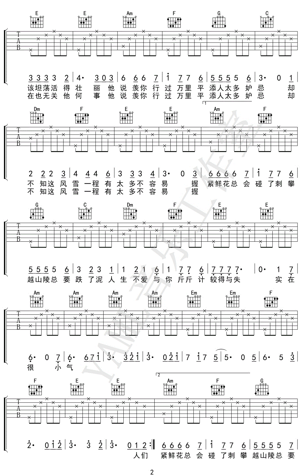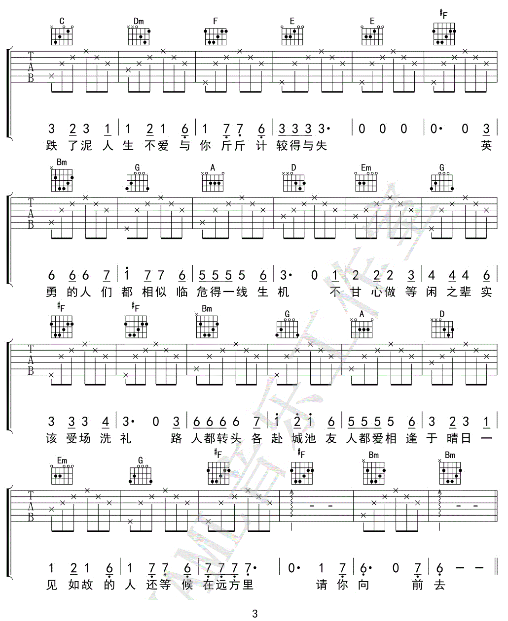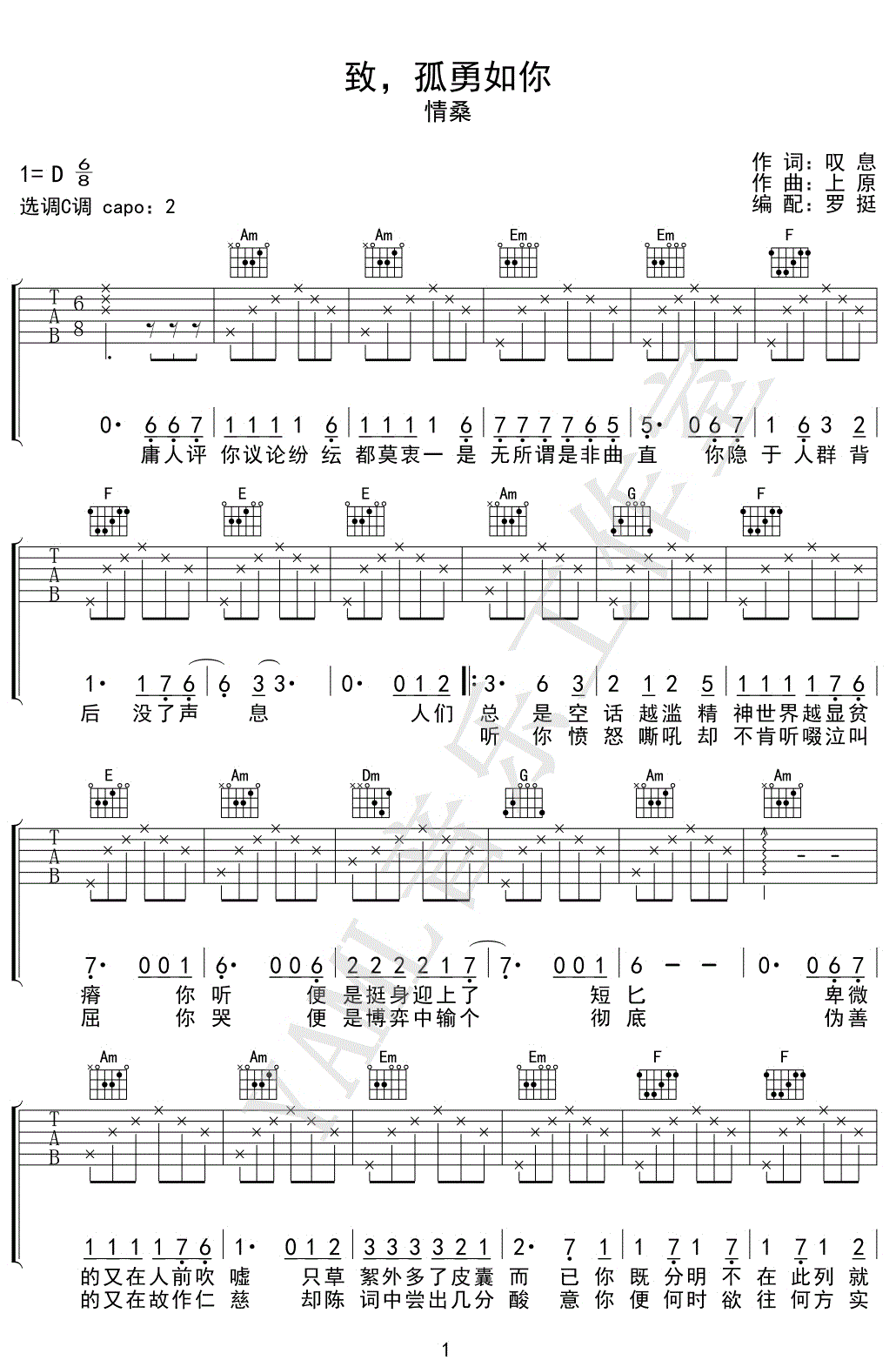 曲谱介绍: 情桑/叹息《致孤勇如你》吉他弹唱谱,采用C调指法编配原版,共有3张高清图谱。
