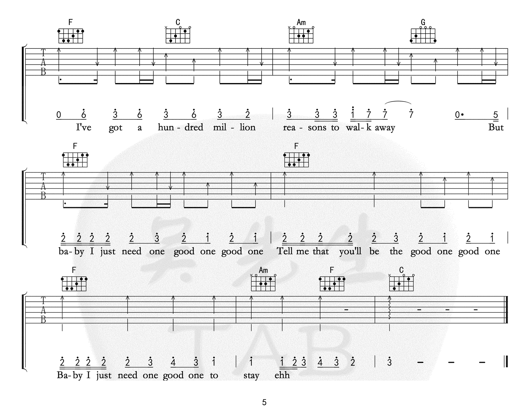 当前位置:琴谱网>吉他弹唱>Million Reasons