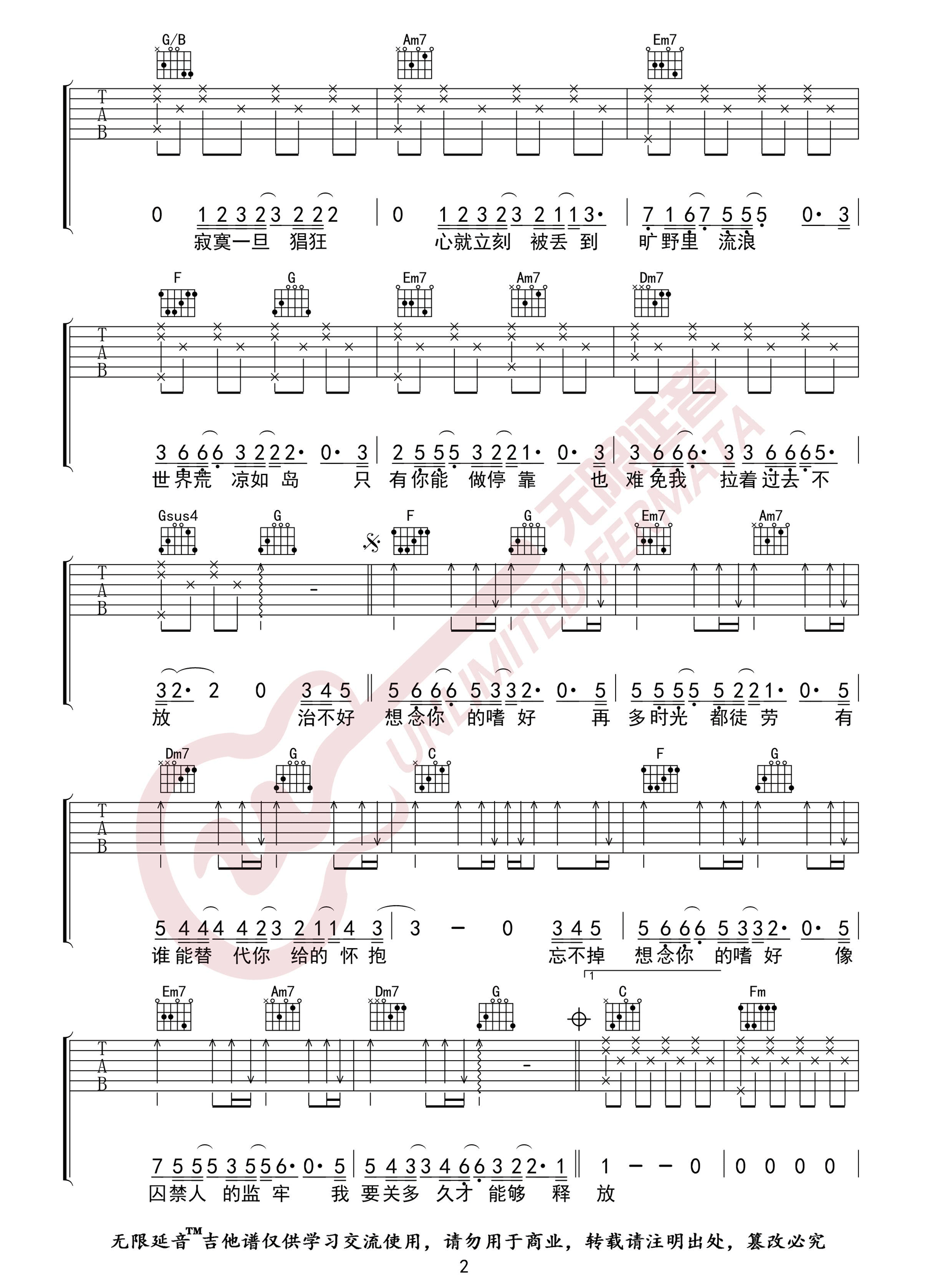 曲谱介绍: 颜人中《嗜好》吉他弹唱谱,采用C调指法编配原版,共有3张高清图谱。