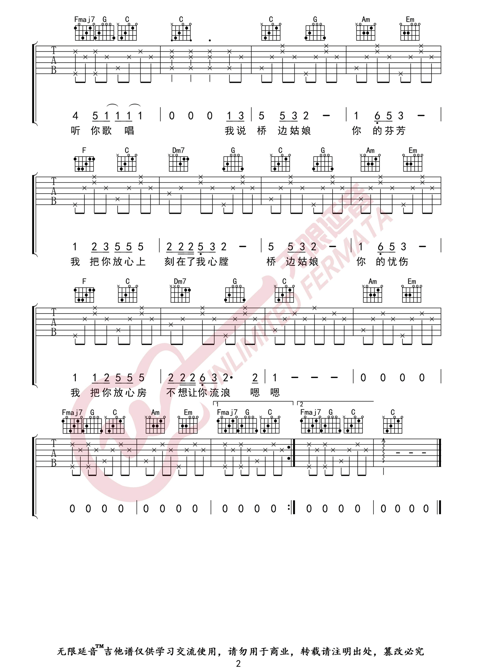 当前位置:琴谱网>吉他弹唱>桥边姑娘