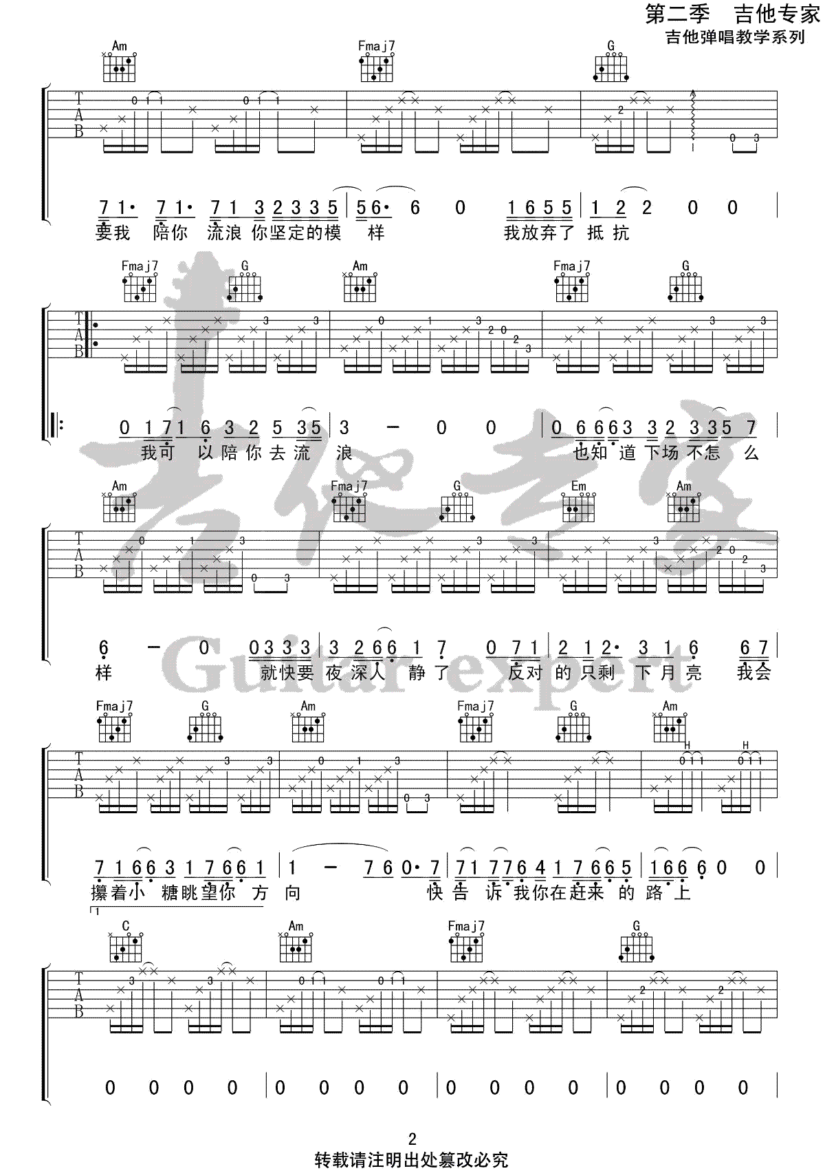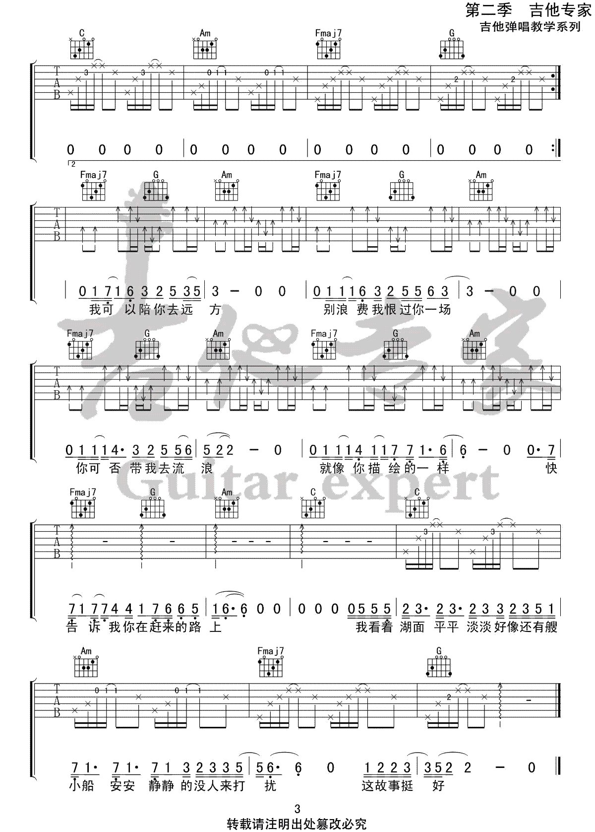 当前位置:琴谱网>吉他弹唱>陪你去流浪