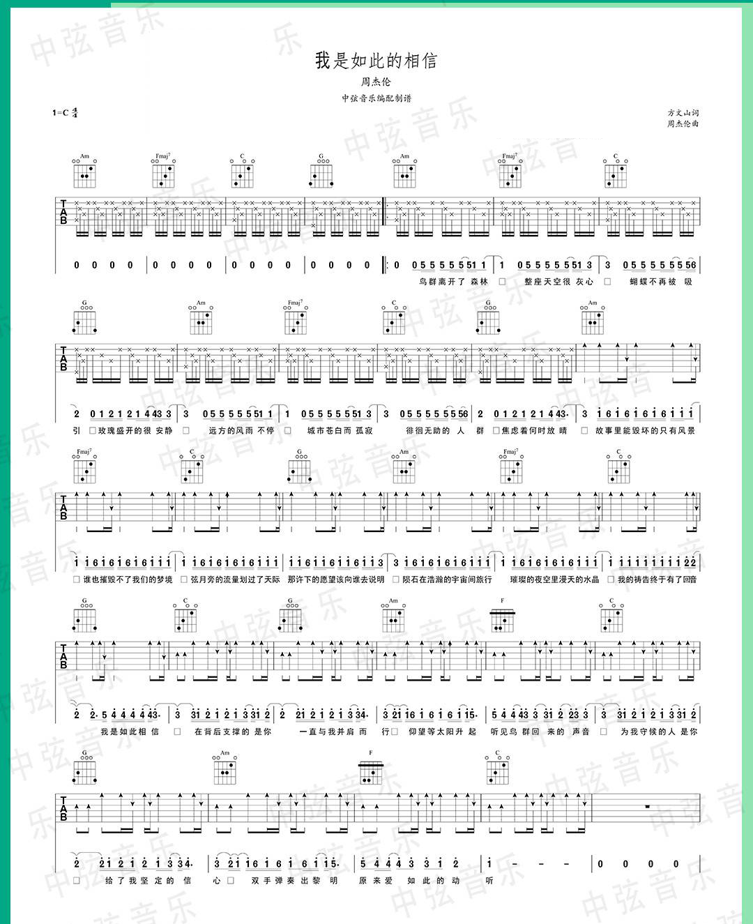 我是如此相信吉他谱 - 周杰伦 - C调吉他弹唱谱
