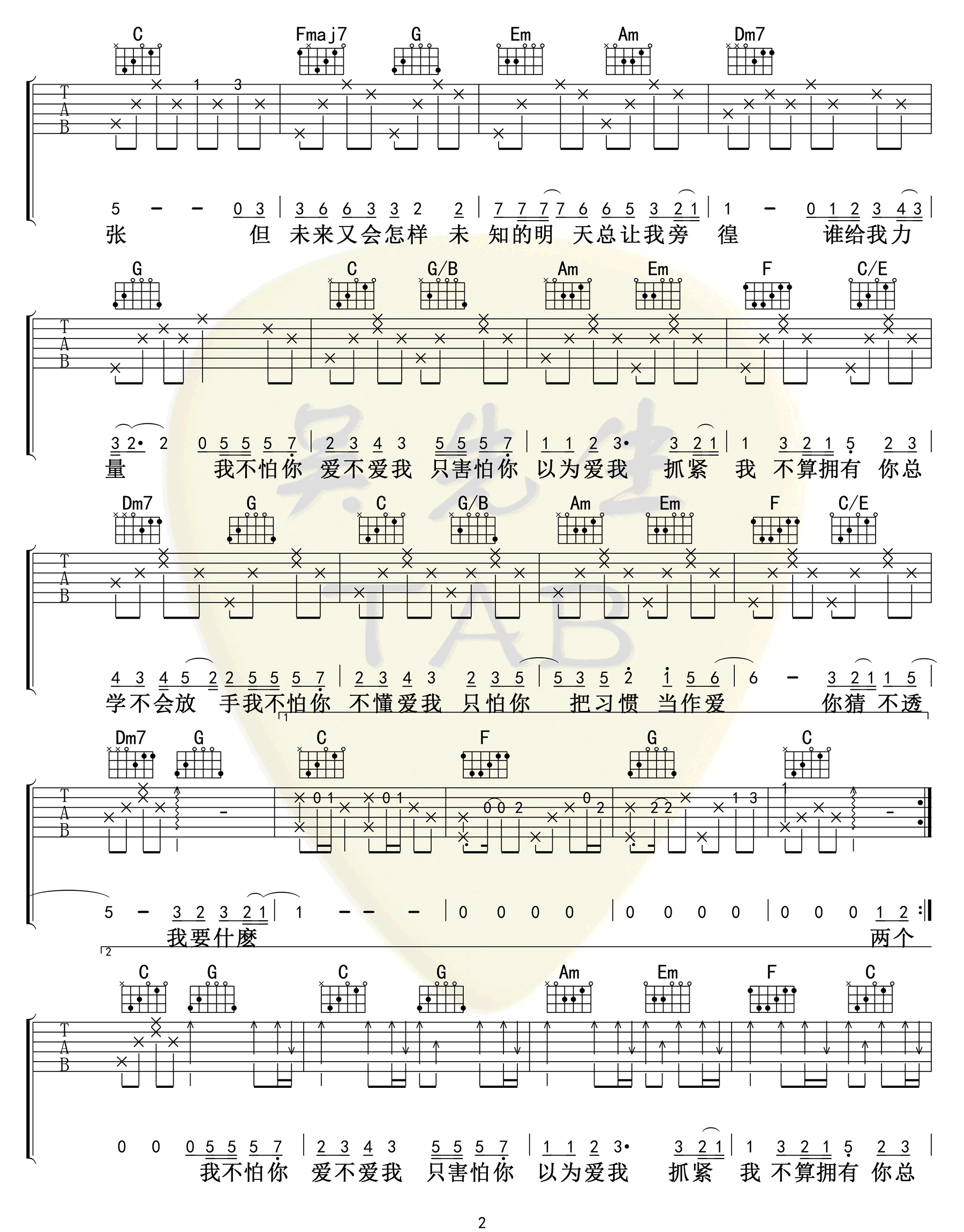 曲谱介绍: 容祖儿/林俊杰《这就是爱吗》吉他弹唱谱,采用C调指法编配,共有3张高清图谱。