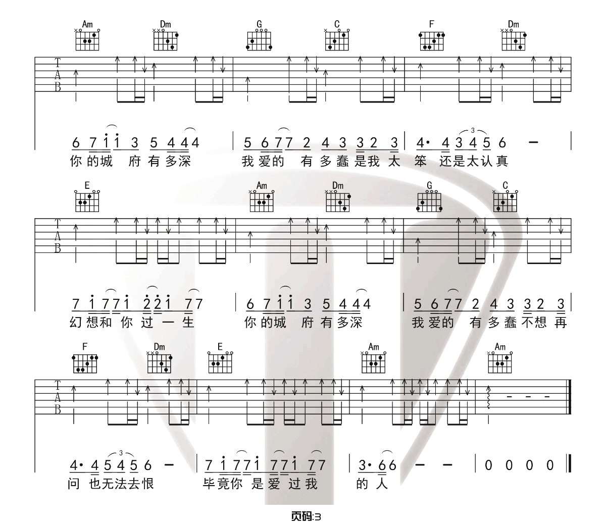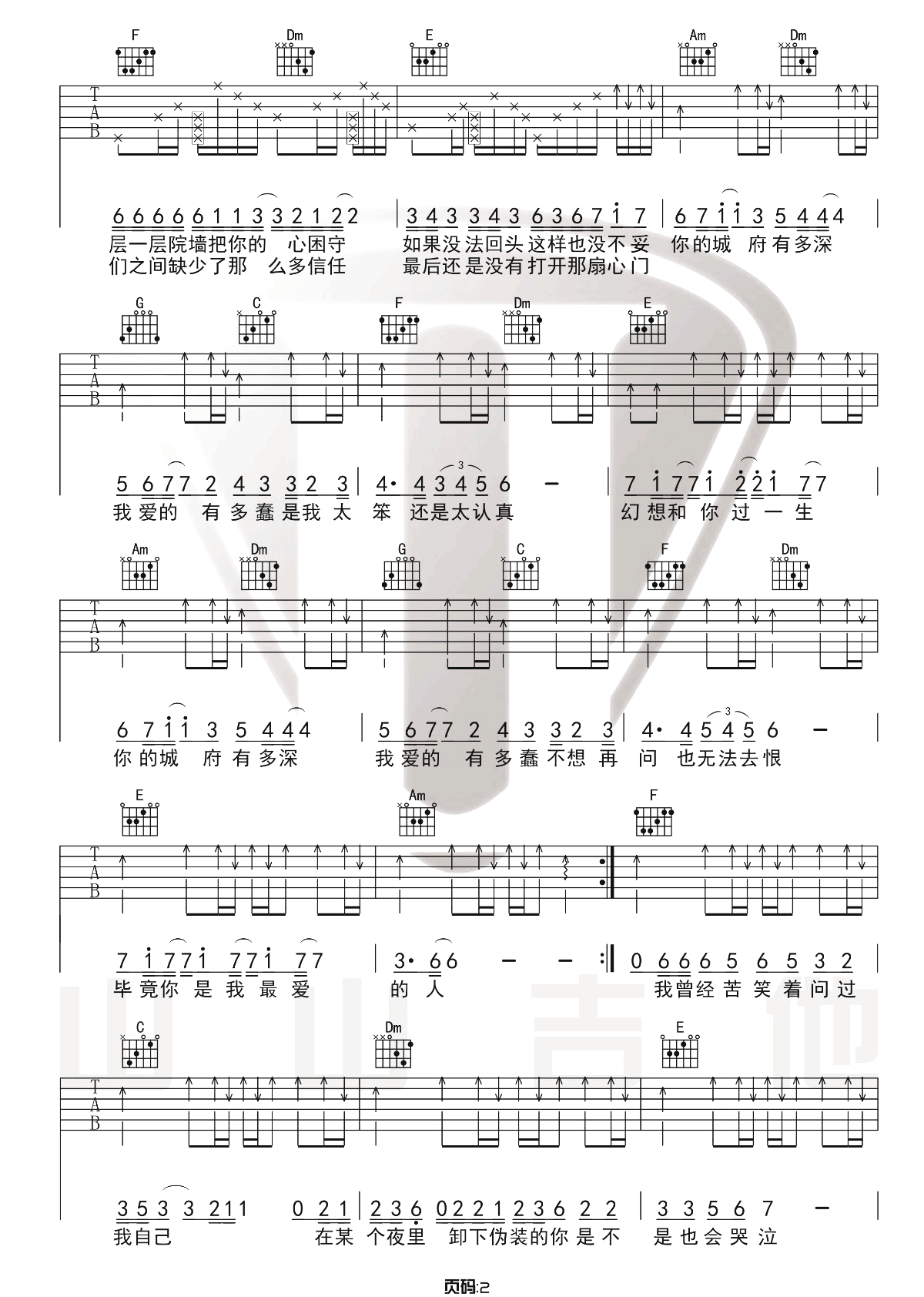 当前位置:琴谱网>吉他弹唱>城府