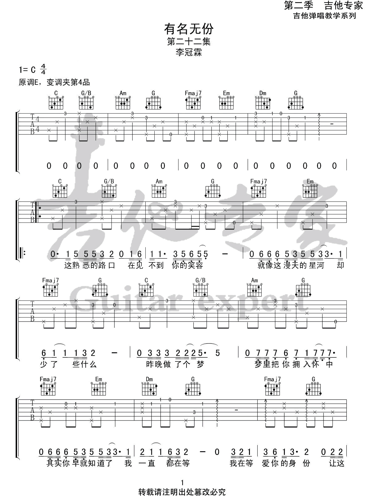 有名无份吉他谱 - 李冠霖 - C调吉他弹唱谱 - 原版