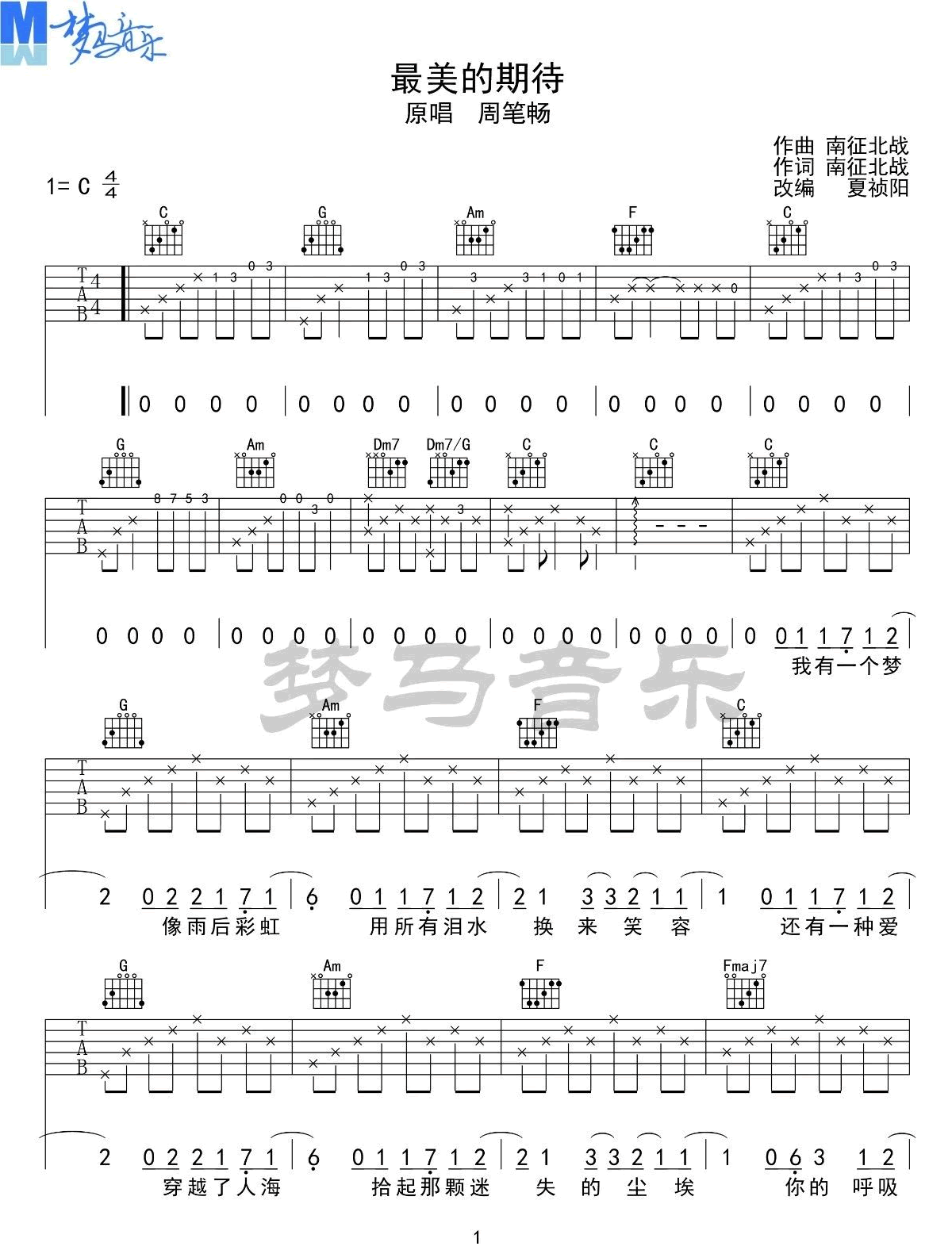 最美的期待吉他谱 - 南征北战/周笔畅 - C调吉他弹唱谱 - 原版