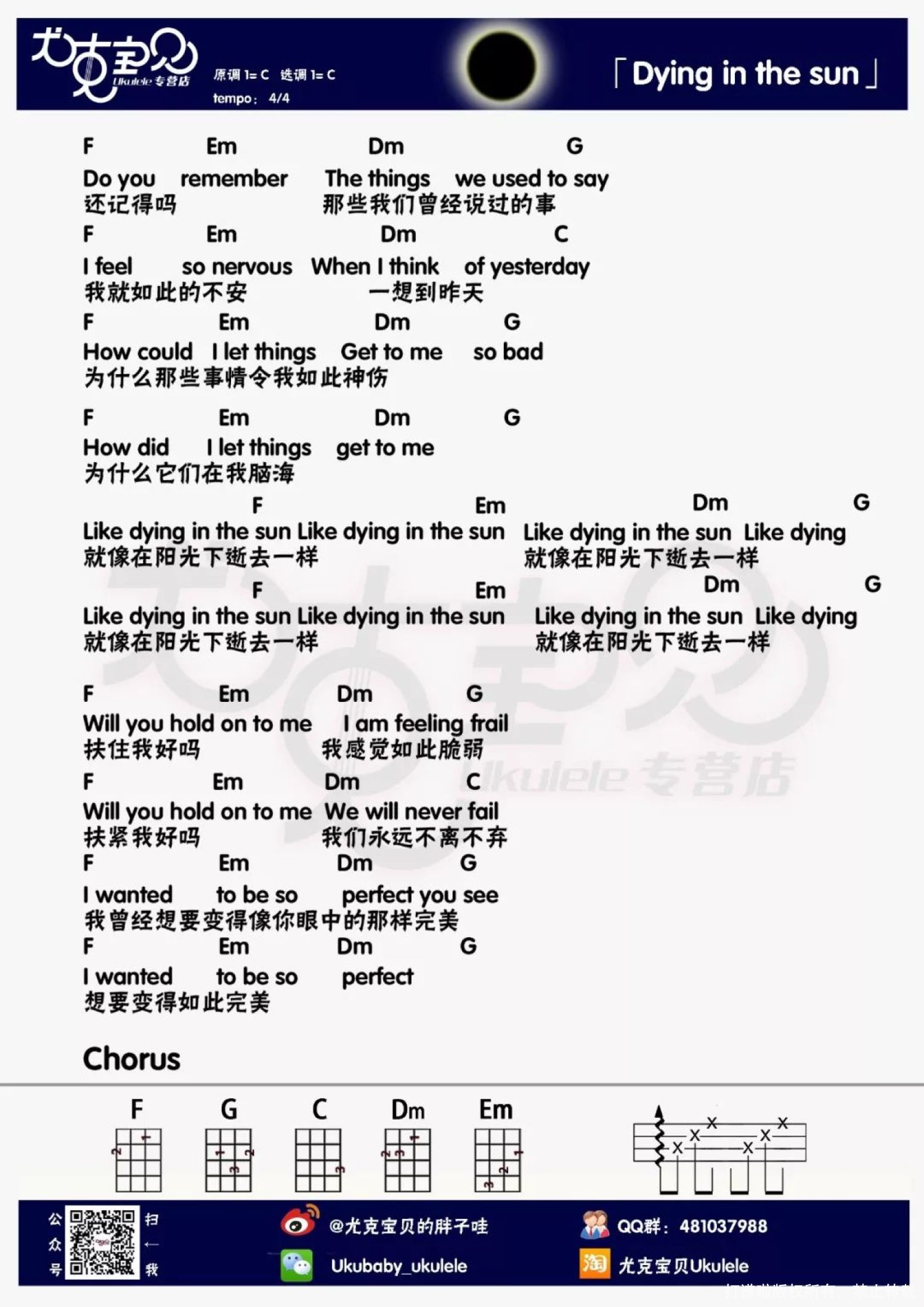 曲谱介绍: 《Dying in the sun》尤克里里弹唱谱