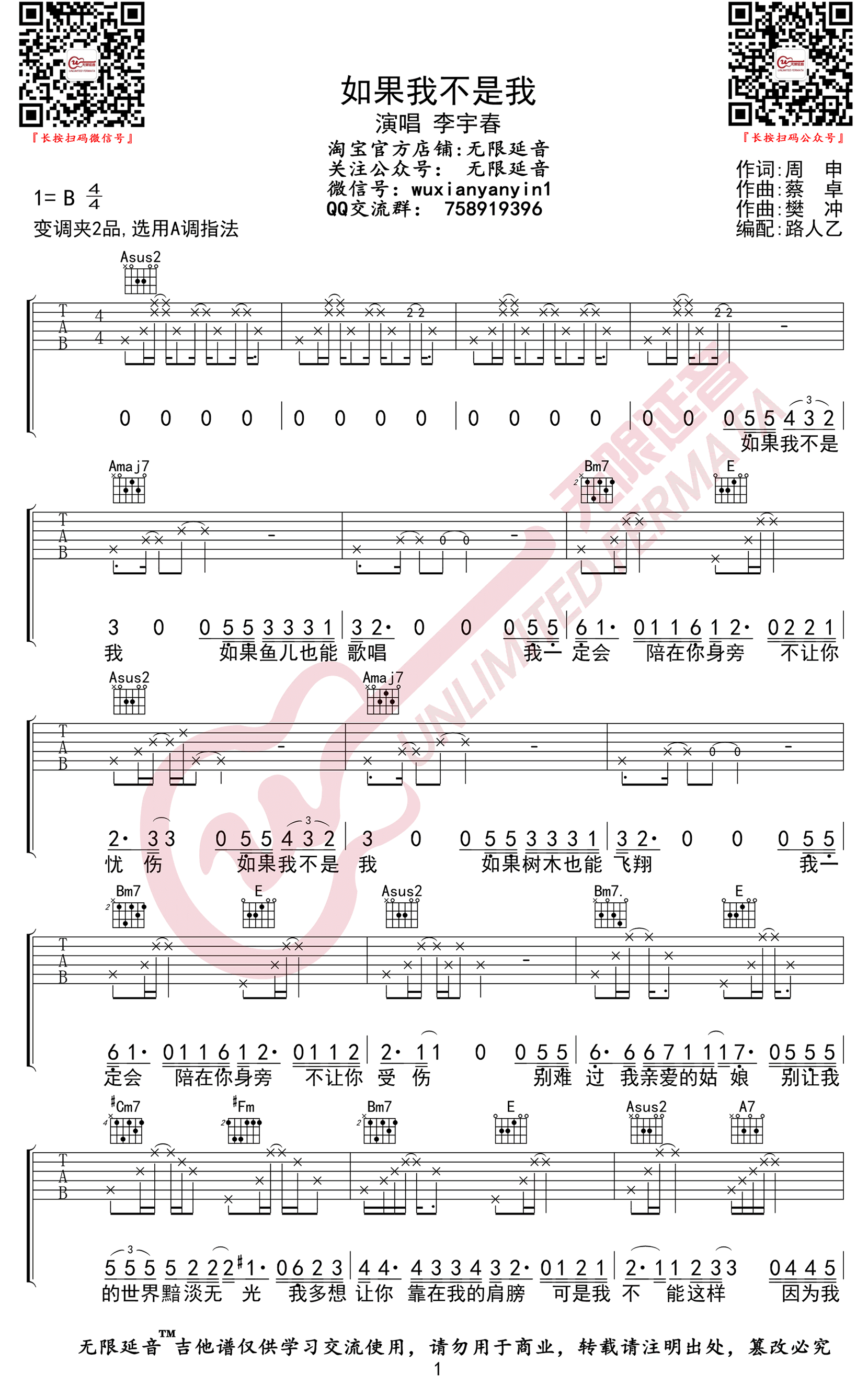 当前位置:琴谱网>吉他弹唱>如果我不是我