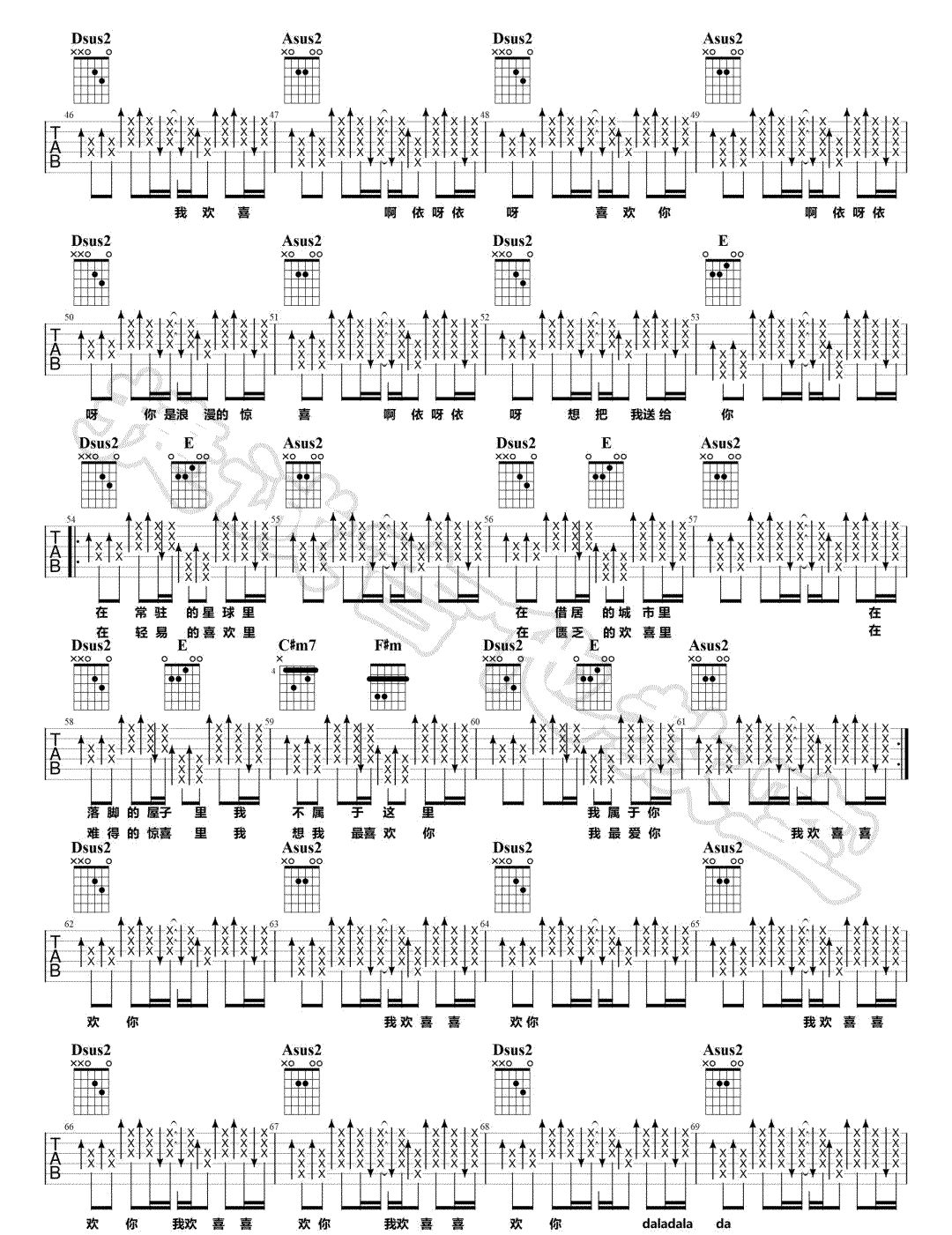 当前位置:琴谱网>吉他弹唱>我欢喜喜欢你