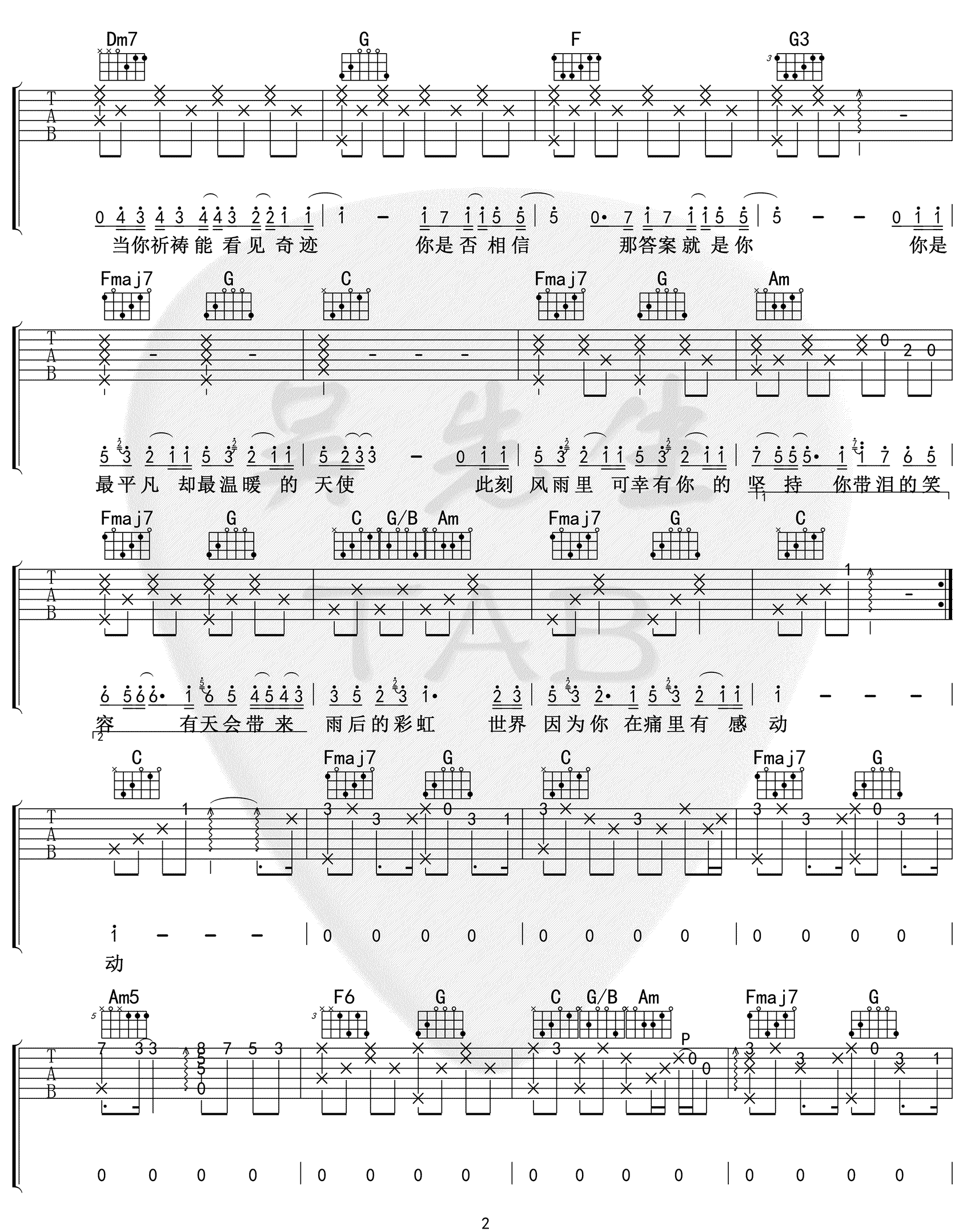 曲谱介绍: 邓紫棋《平凡天使》吉他弹唱谱,采用C调指法编配原版,共有3张高清图谱。