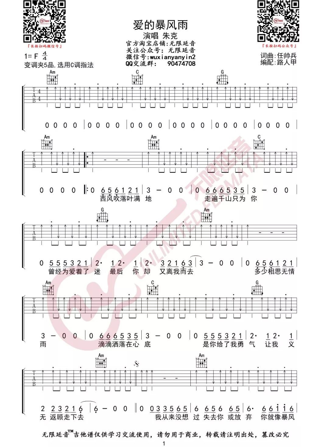 曲谱介绍: 朱克《爱的暴风雨》吉他弹唱谱,采用C调指法编配,共有2张高清图谱,免翻页排版设计。