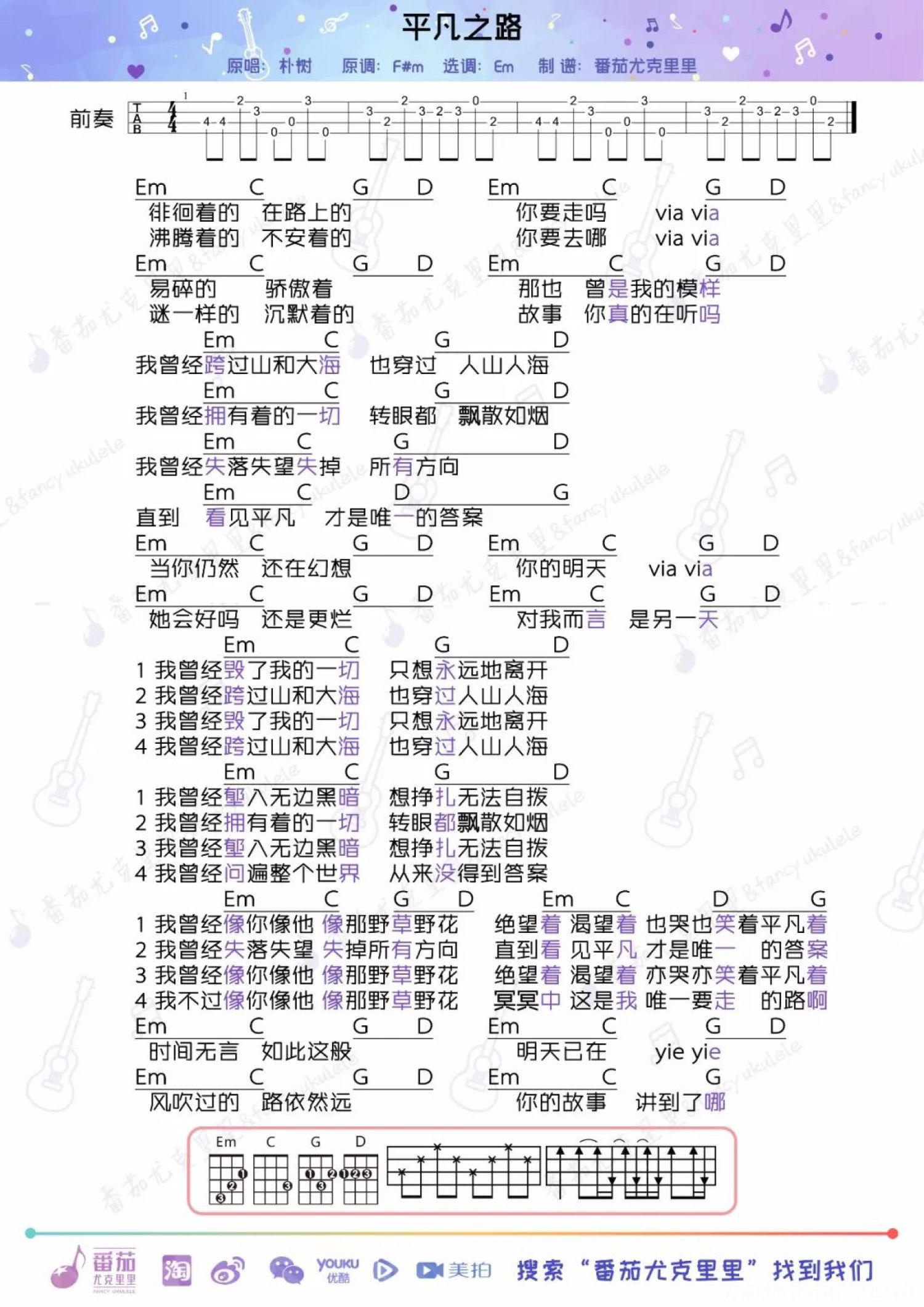 曲谱介绍: 平凡之路弹唱教学   曲谱