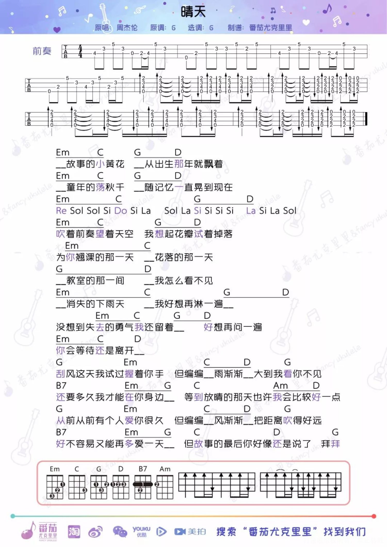 当前位置:琴谱网>尤克里里>晴天