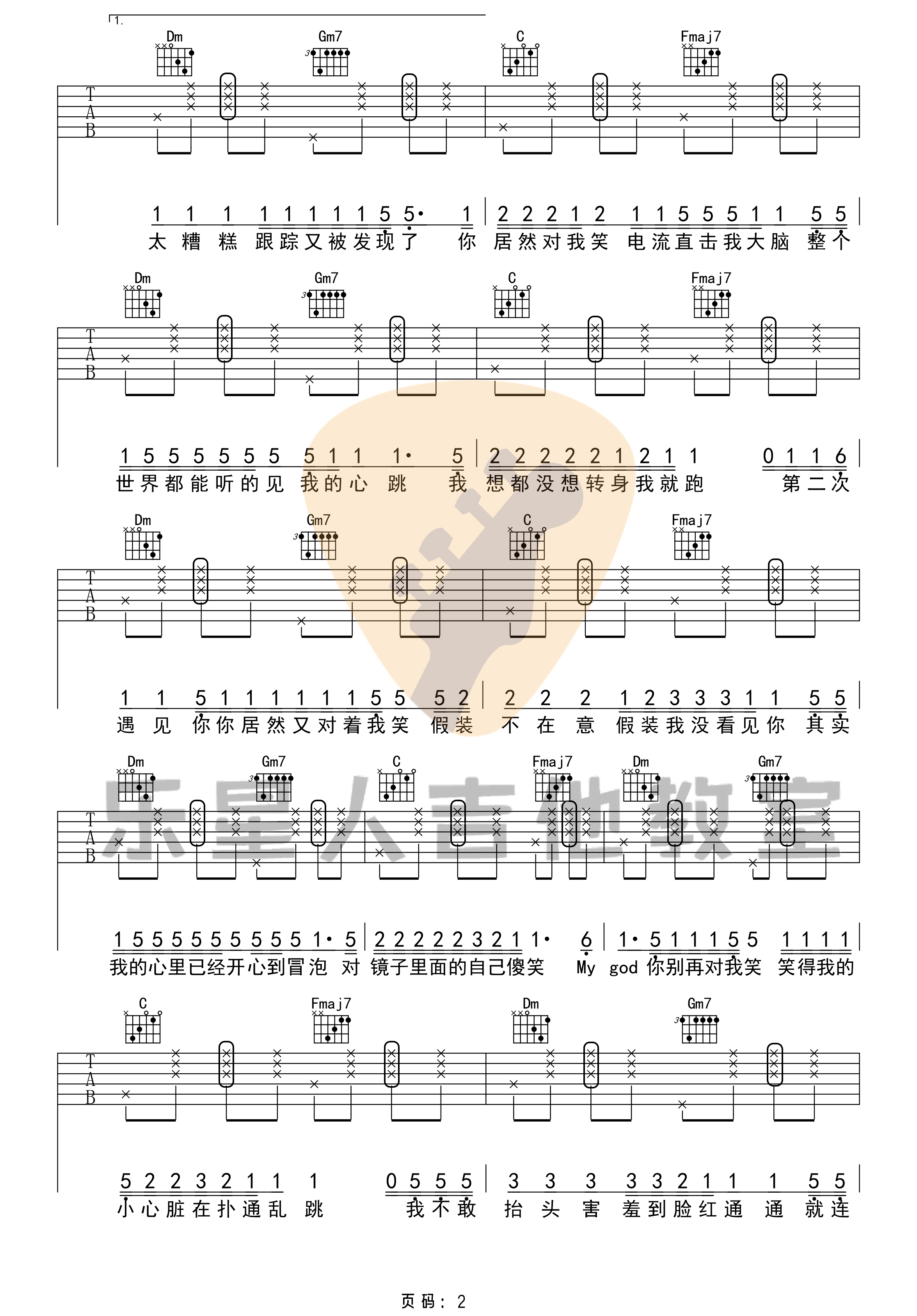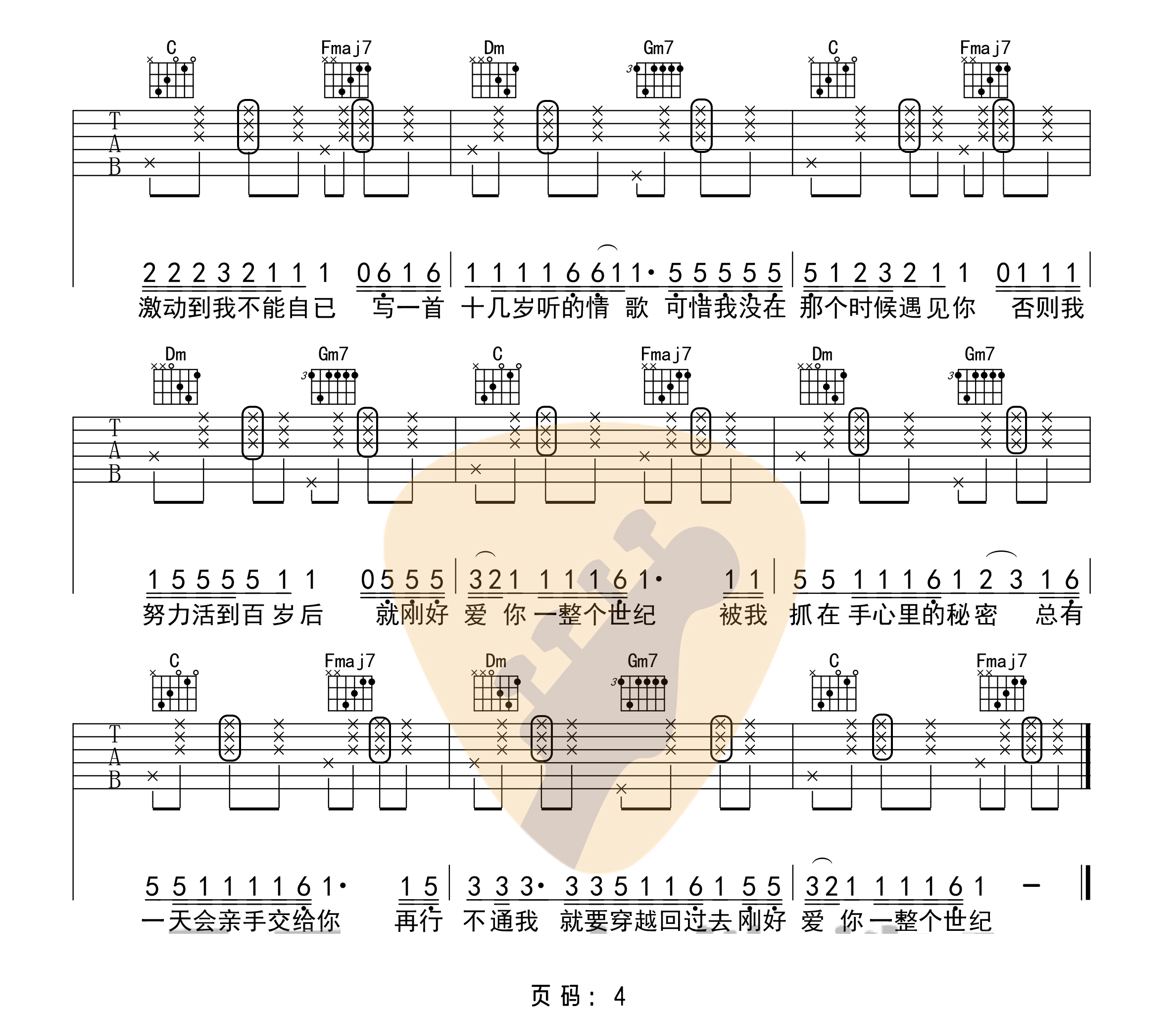 曲谱介绍: AY杨佬叁《零几年听的情歌》吉他弹唱谱,采用F调指法编配原版,共有4张高清图谱。