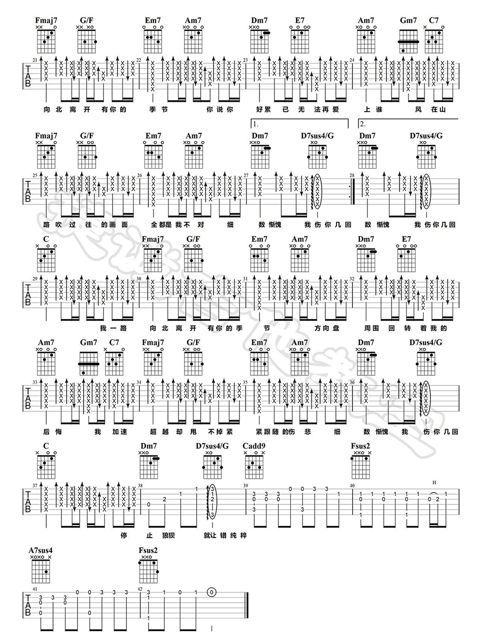 一路向北吉他谱 - 周杰伦 - C调吉他弹唱谱 - 原版