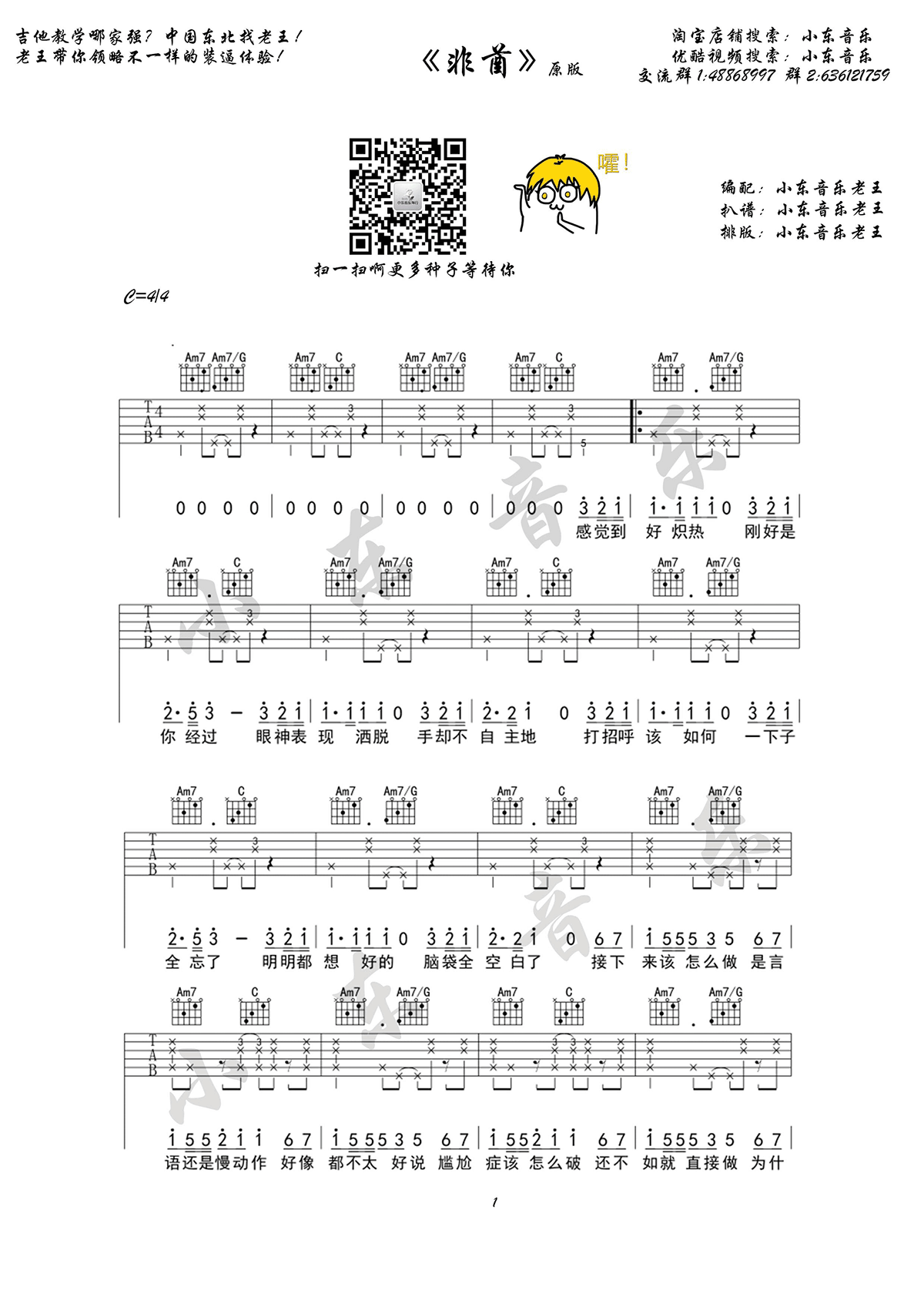 曲谱介绍: 薛明媛/朱贺《非酋》吉他弹唱谱,采用C调指法编配,共有2张高清图谱,免翻页排版设计。