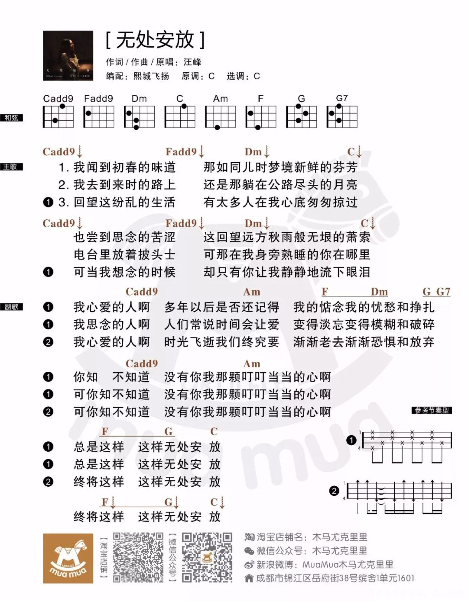 无处安放尤克里里谱 - 汪峰