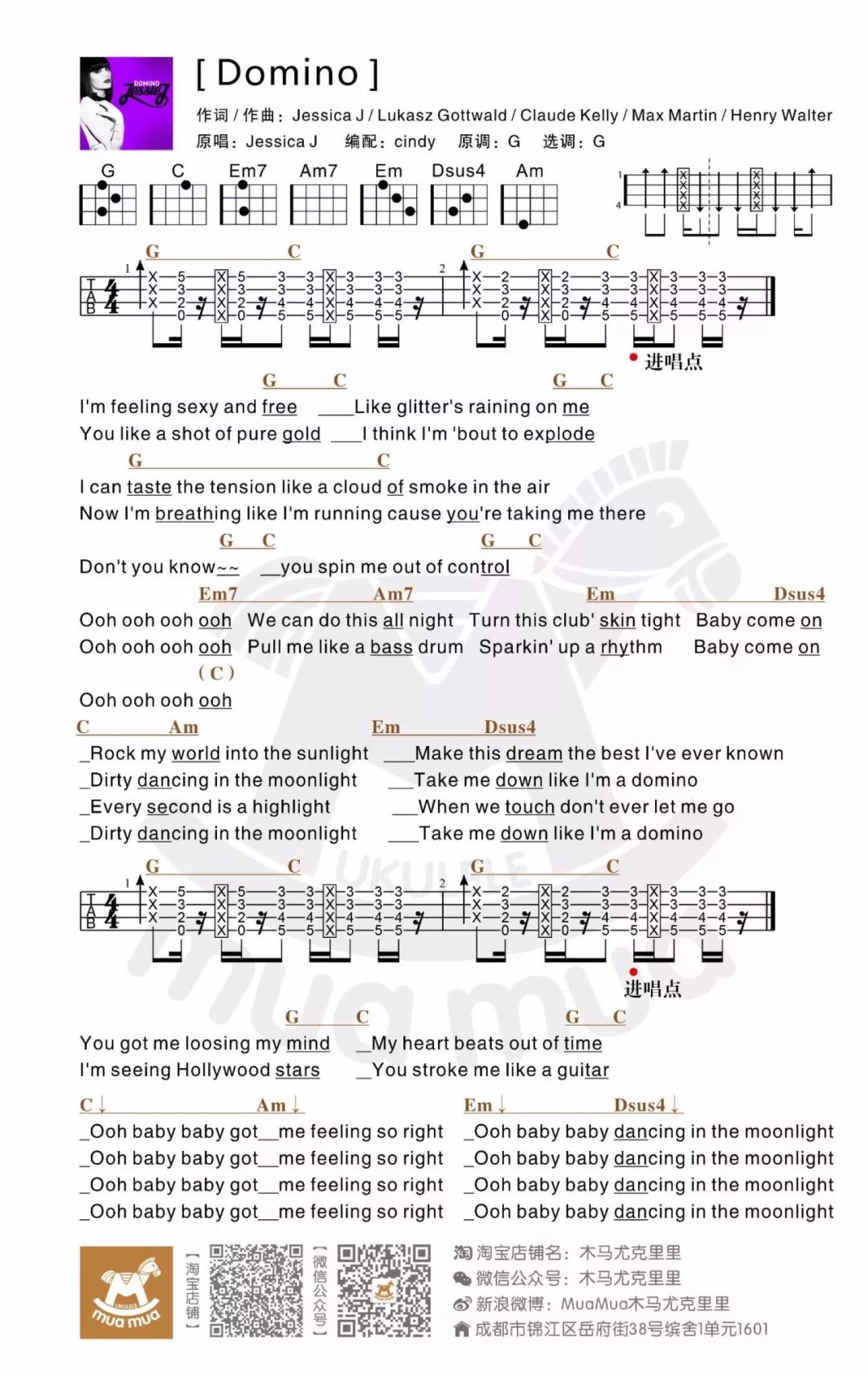 曲谱介绍: 飞扬短评:三分功力,轻松碾压,结石姐毫无疑问的冠军,剩下的悬念就是她会在第几期退赛,不然这比赛没法比。   《Domino》尤克里里弹唱谱