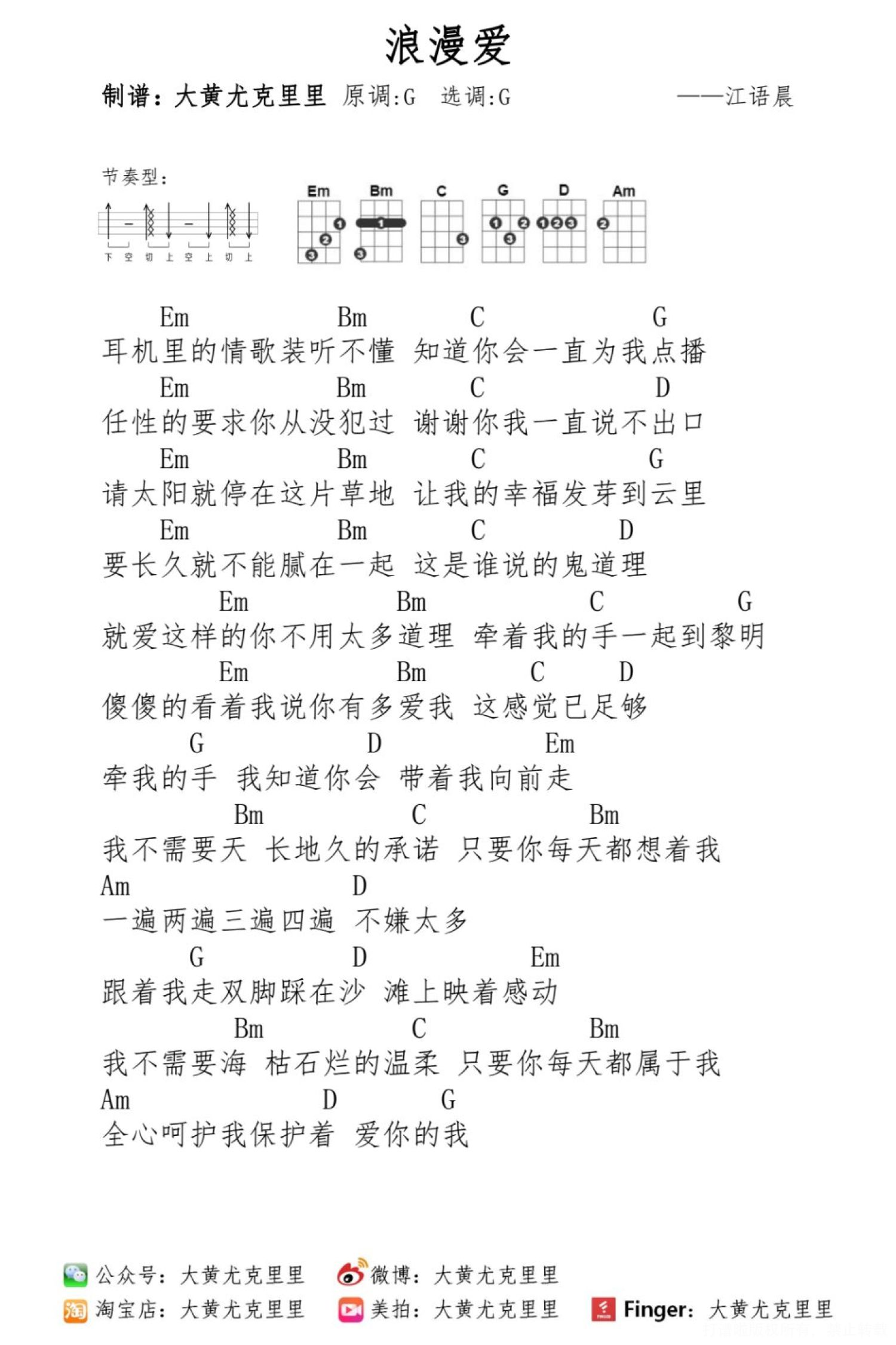 曲谱介绍: 《浪漫爱》尤克里里谱