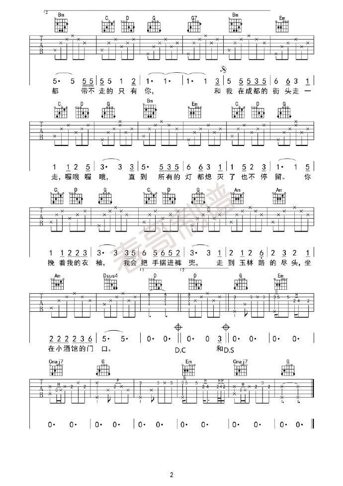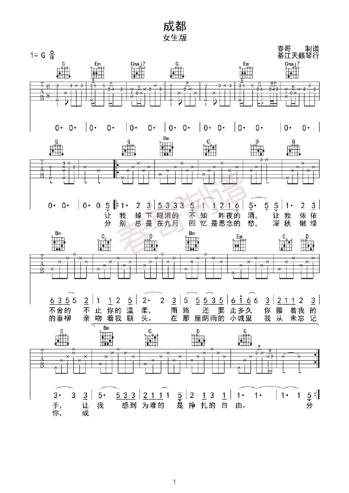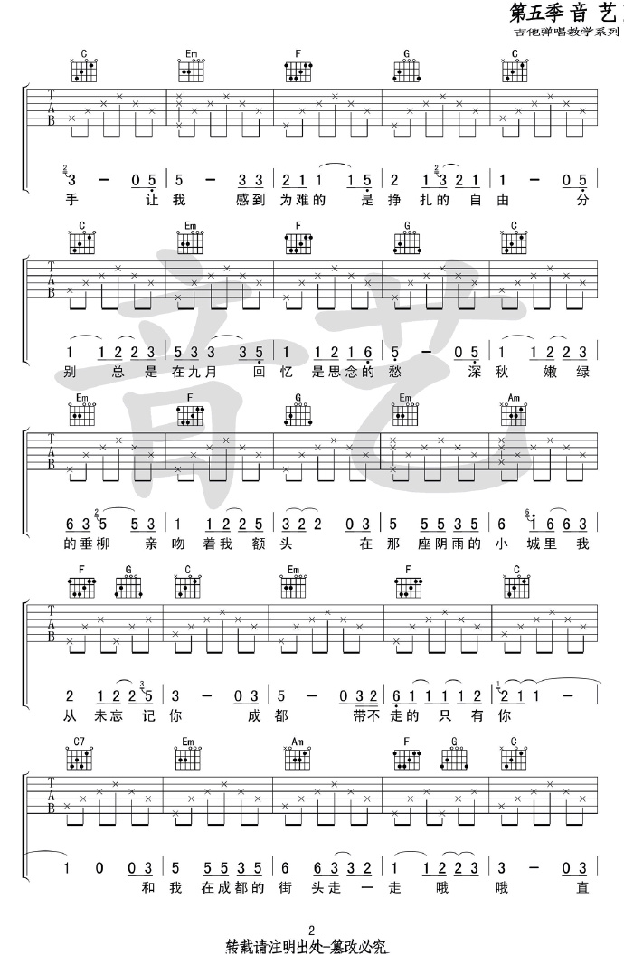 当前位置:琴谱网>吉他弹唱>成都