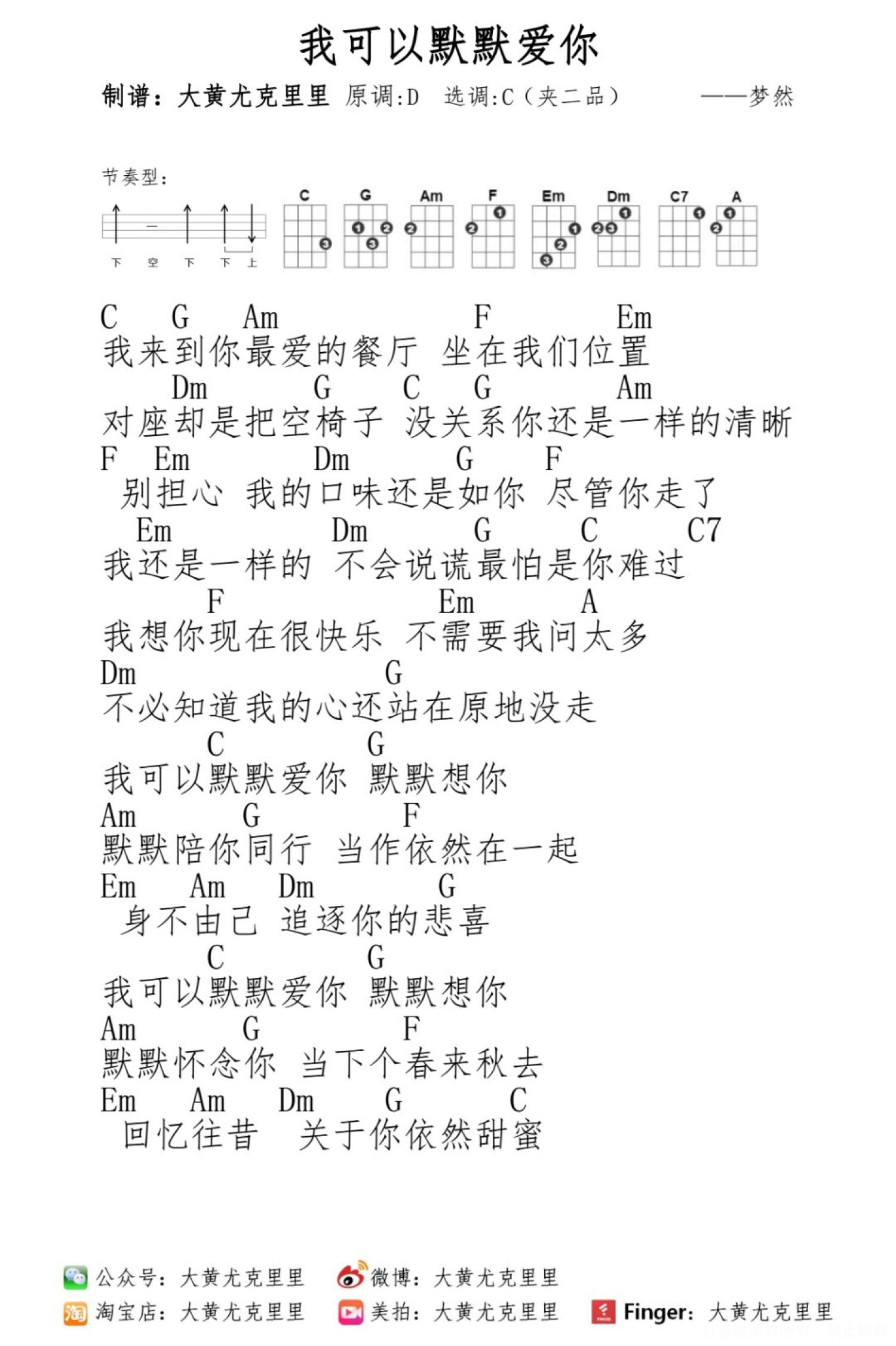 曲谱介绍: 《我可以默默爱你》尤克里里谱