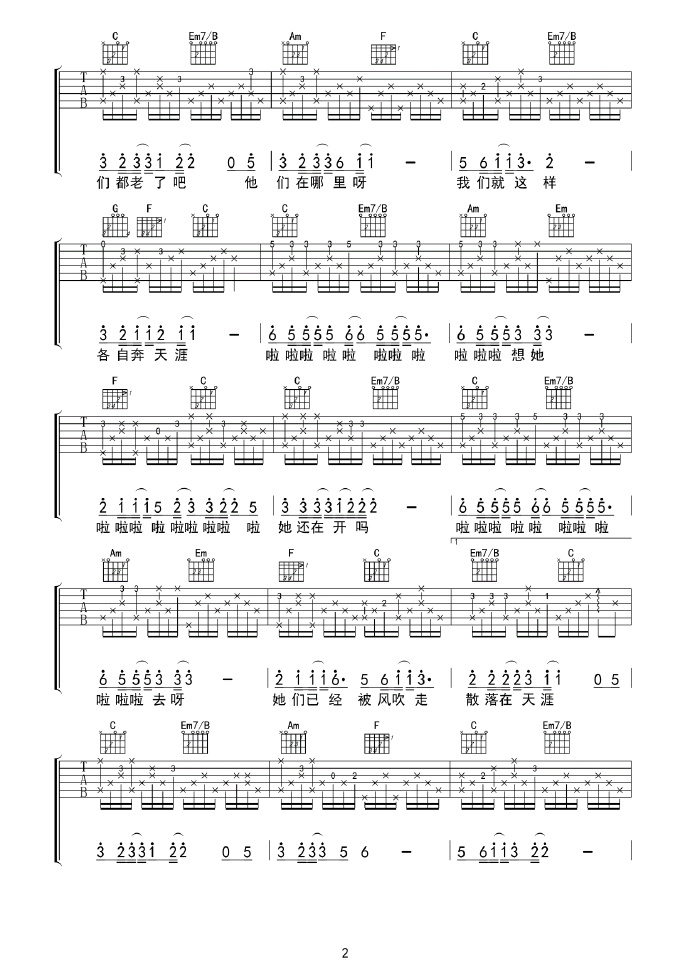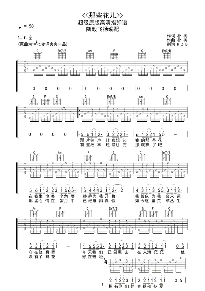 曲谱介绍: 朴树《那些花儿》吉他弹唱谱,采用C调指法编配,共有3张高清图谱。