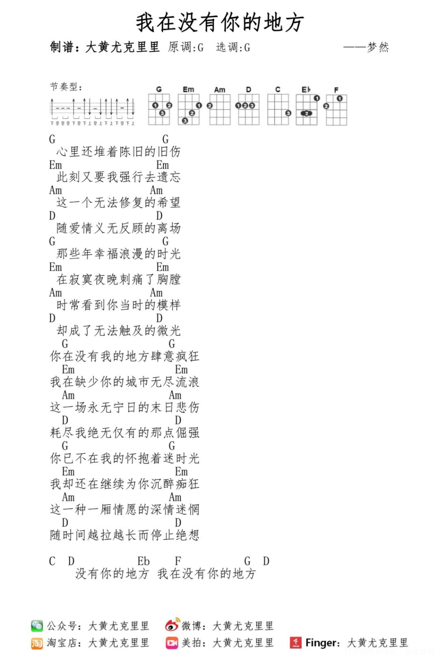 当前位置:琴谱网>尤克里里>我在没有你的地方