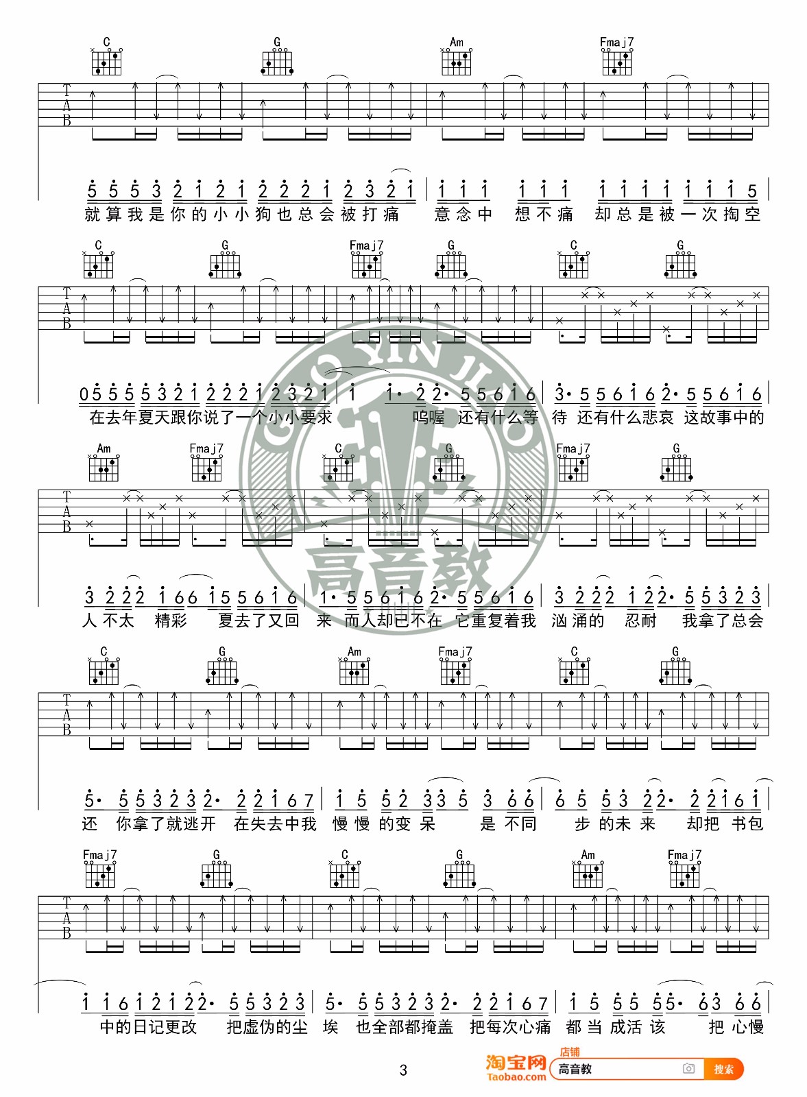 曲谱介绍: 抖音热曲《去年夏天》吉他弹唱谱,采用C调指法编配原版,共有4张高清图谱。