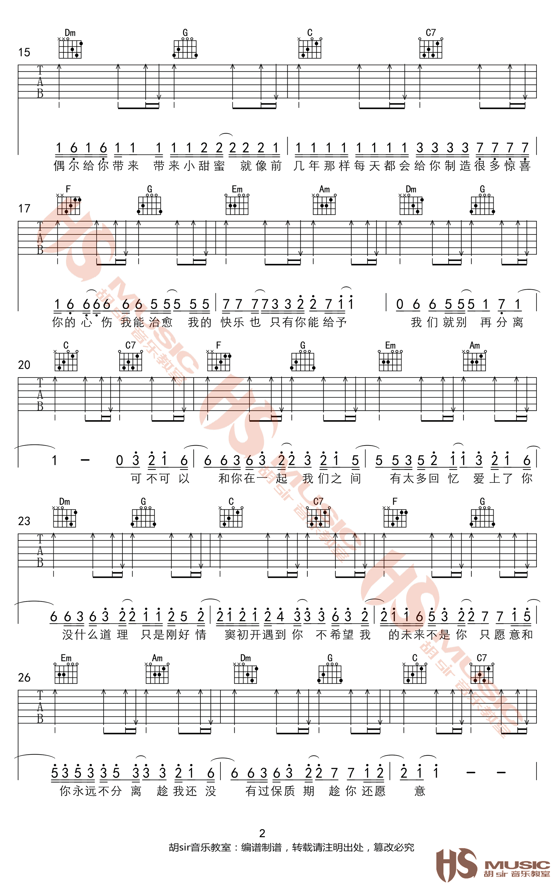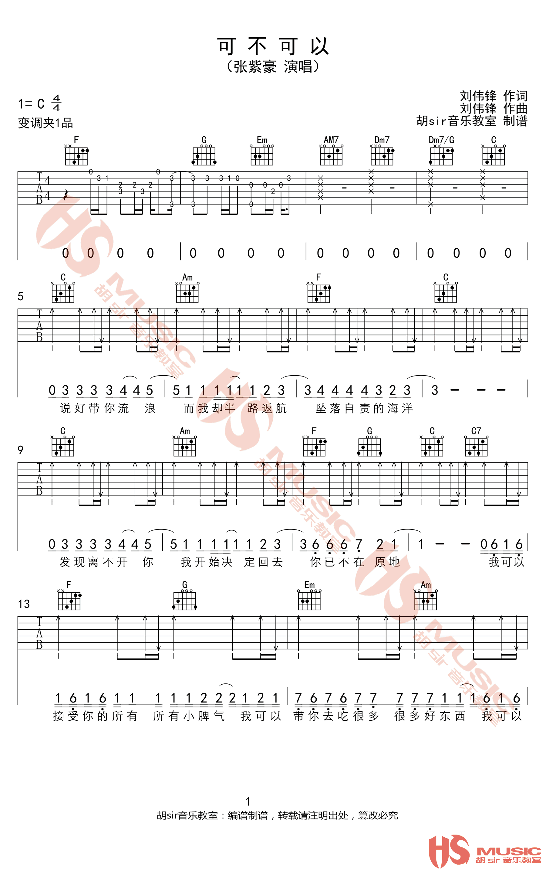 曲谱介绍: 张紫豪《可不可以》吉他弹唱谱,采用C调指法编配,共有3张高清图谱。