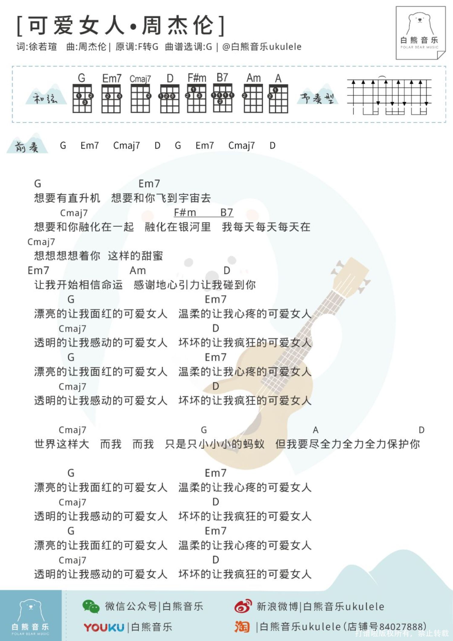 可爱女人尤克里里谱 - 周杰伦
