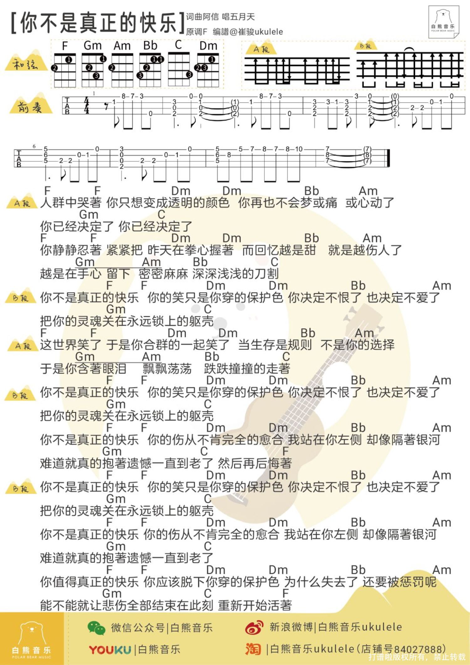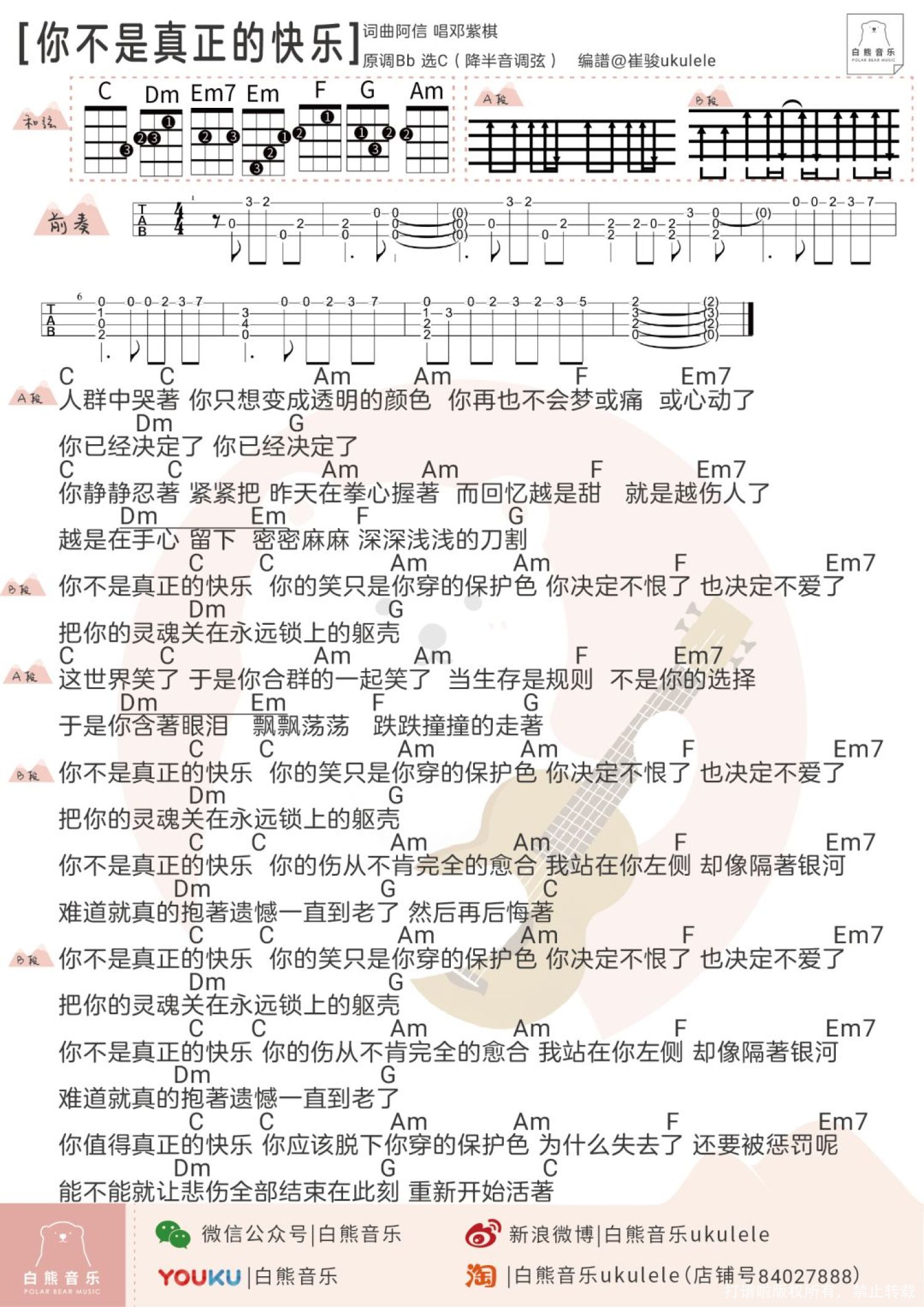 当前位置:琴谱网>尤克里里>你不是真正的快乐