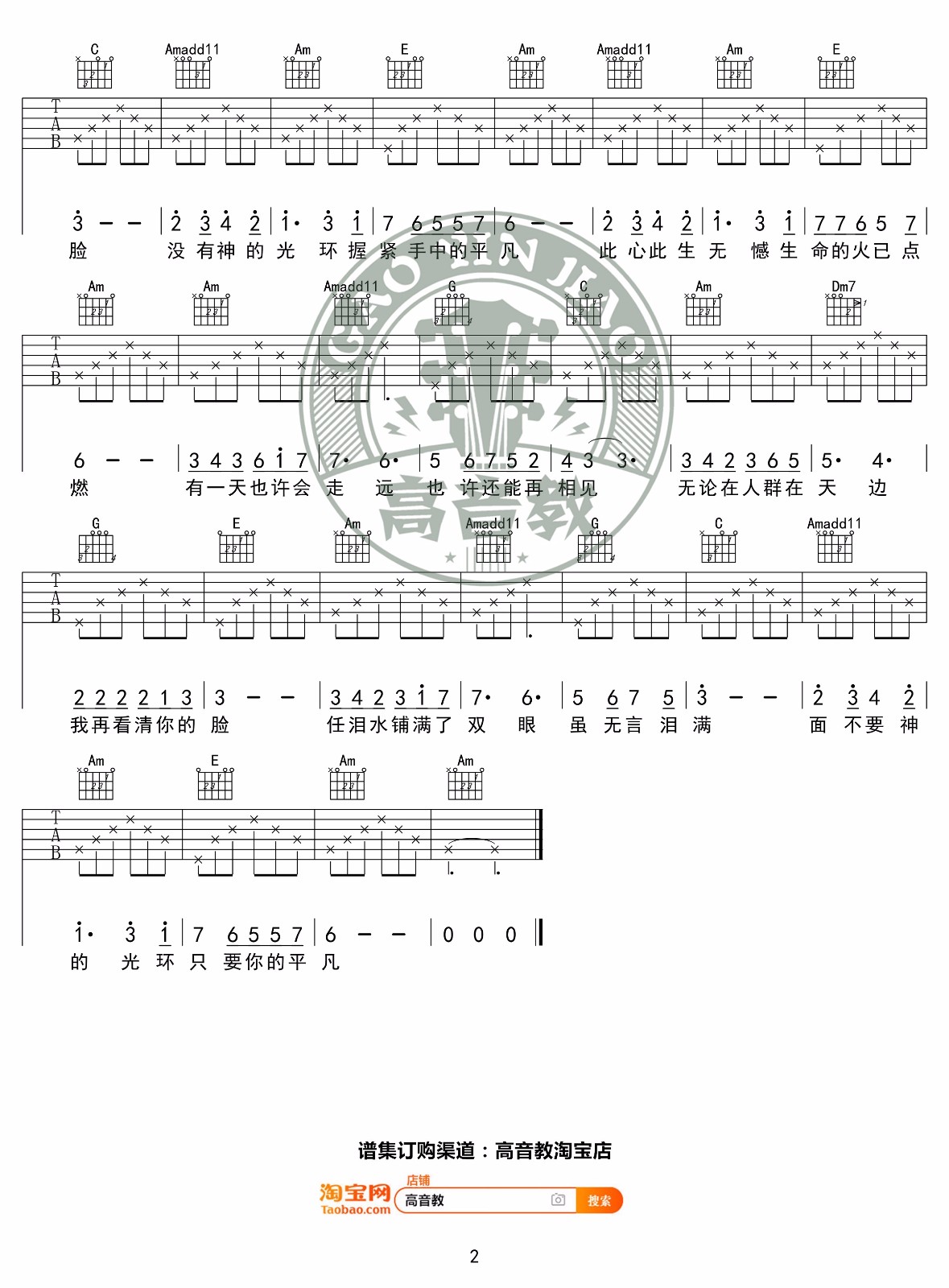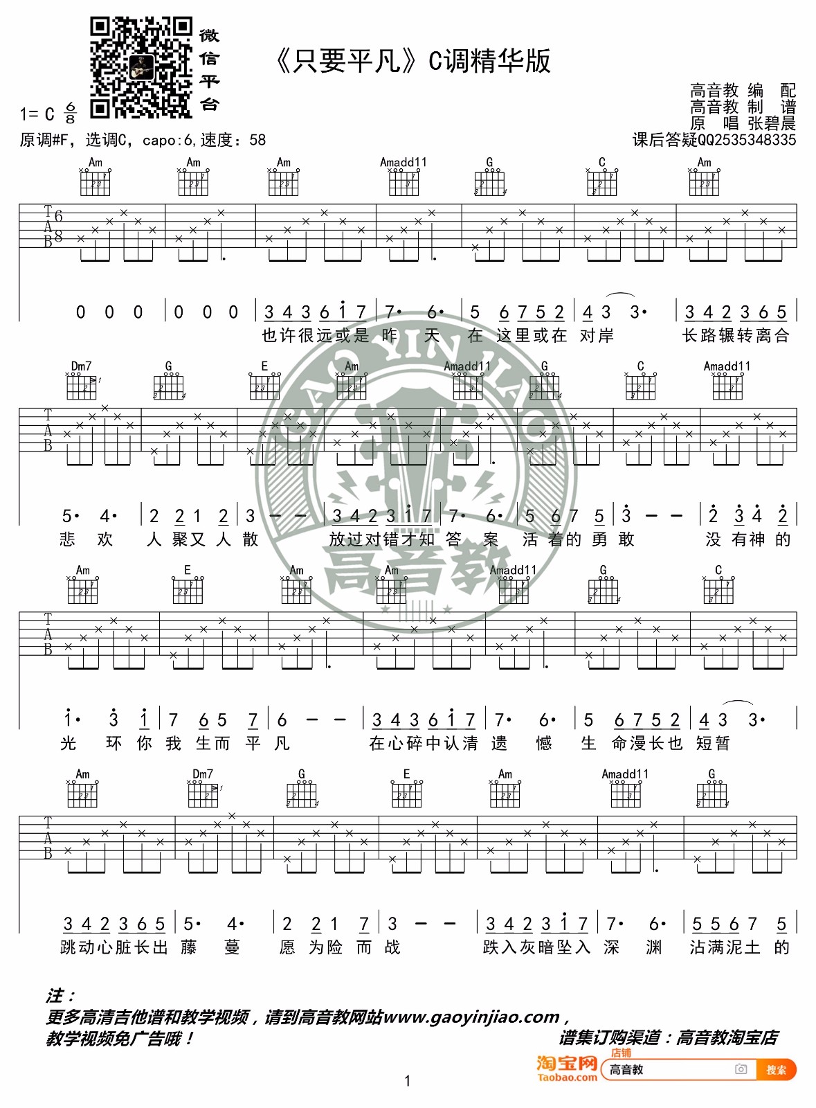 曲谱介绍: 张杰/张碧晨《只要平凡》吉他弹唱谱,采用C调指法编配原版,共有2张高清图谱,免翻页排版设计。