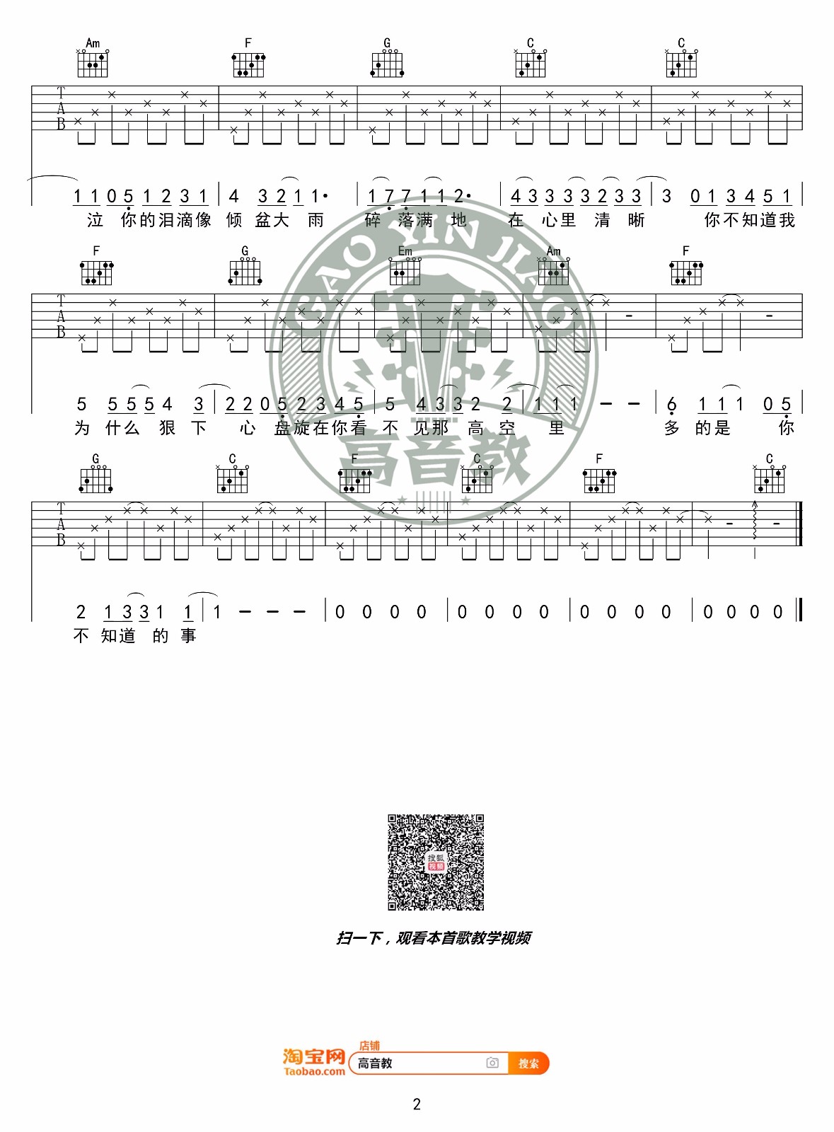曲谱介绍: 王力宏《你不知道的事》吉他弹唱谱,采用C调指法编配原版,共有2张高清图谱,免翻页排版设计。