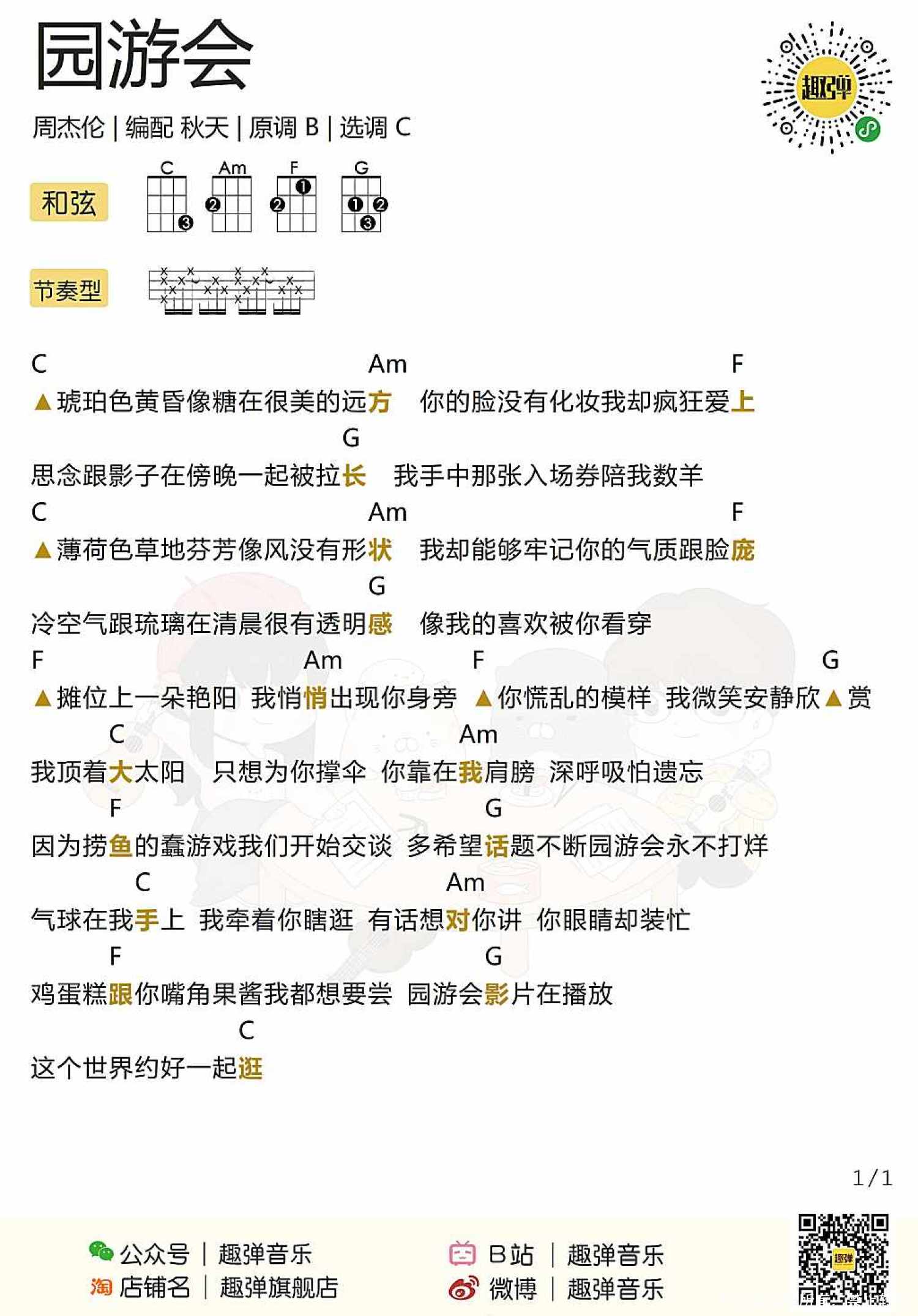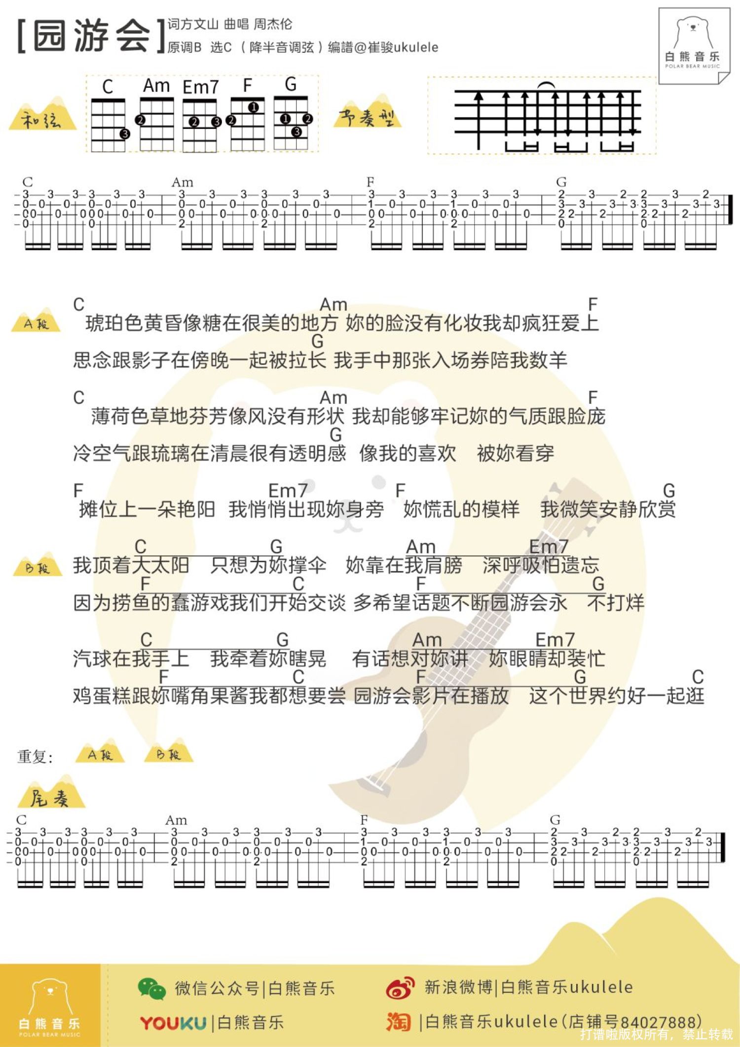 曲谱介绍: 《园游会》尤克里里谱 白熊版   趣弹版   园游会尤克里里教学
