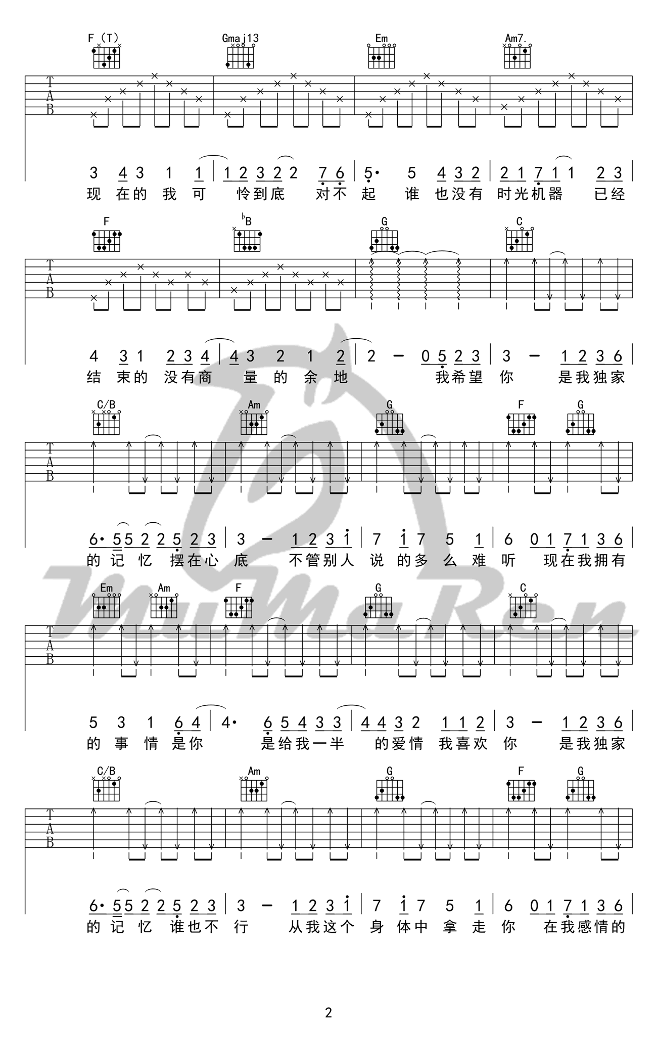 当前位置:琴谱网>吉他弹唱>独家记忆