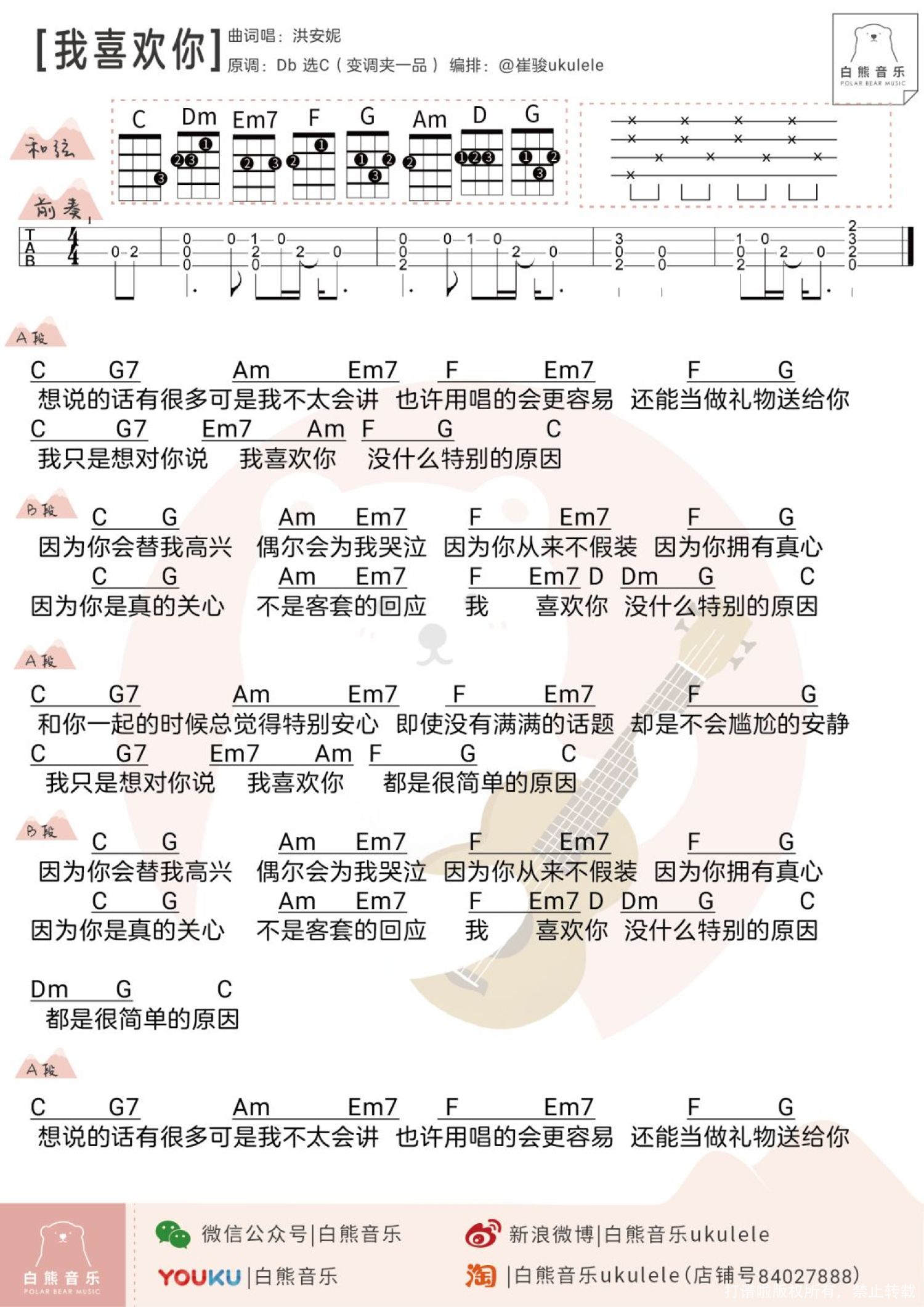 当前位置:琴谱网>尤克里里>我喜欢你