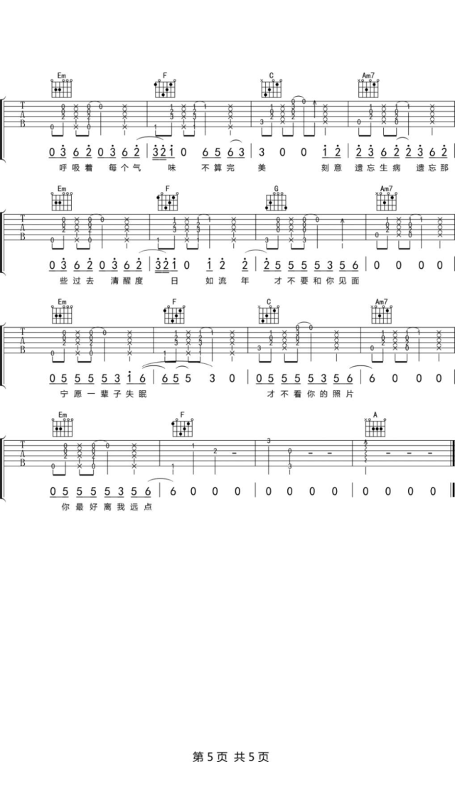 曲谱介绍: 沈以诚《独居男子》吉他弹唱谱,采用C调指法编配原版,共有5张高清图谱。