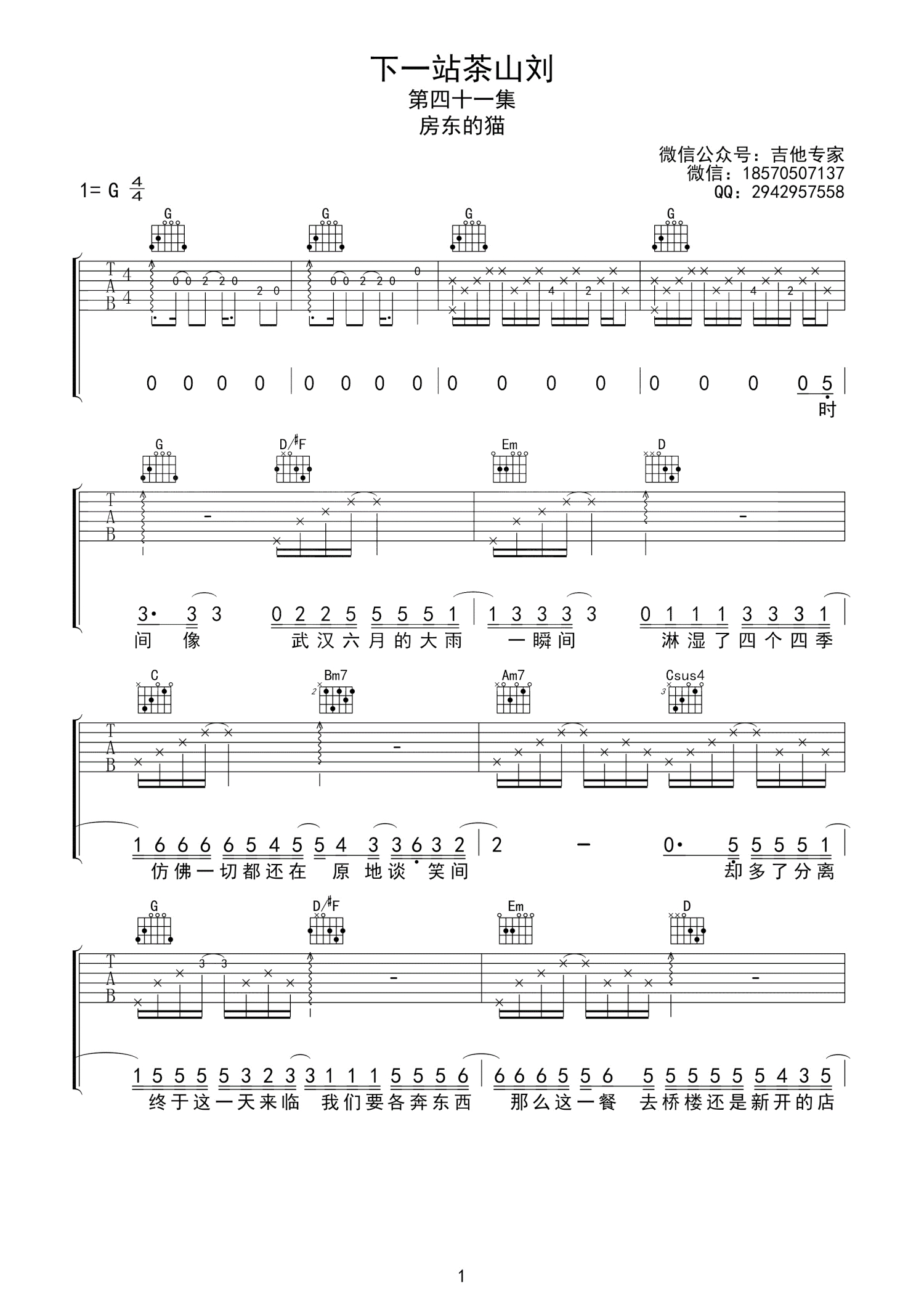 下一站茶山刘吉他谱 - 房东的猫 - G调吉他弹唱谱