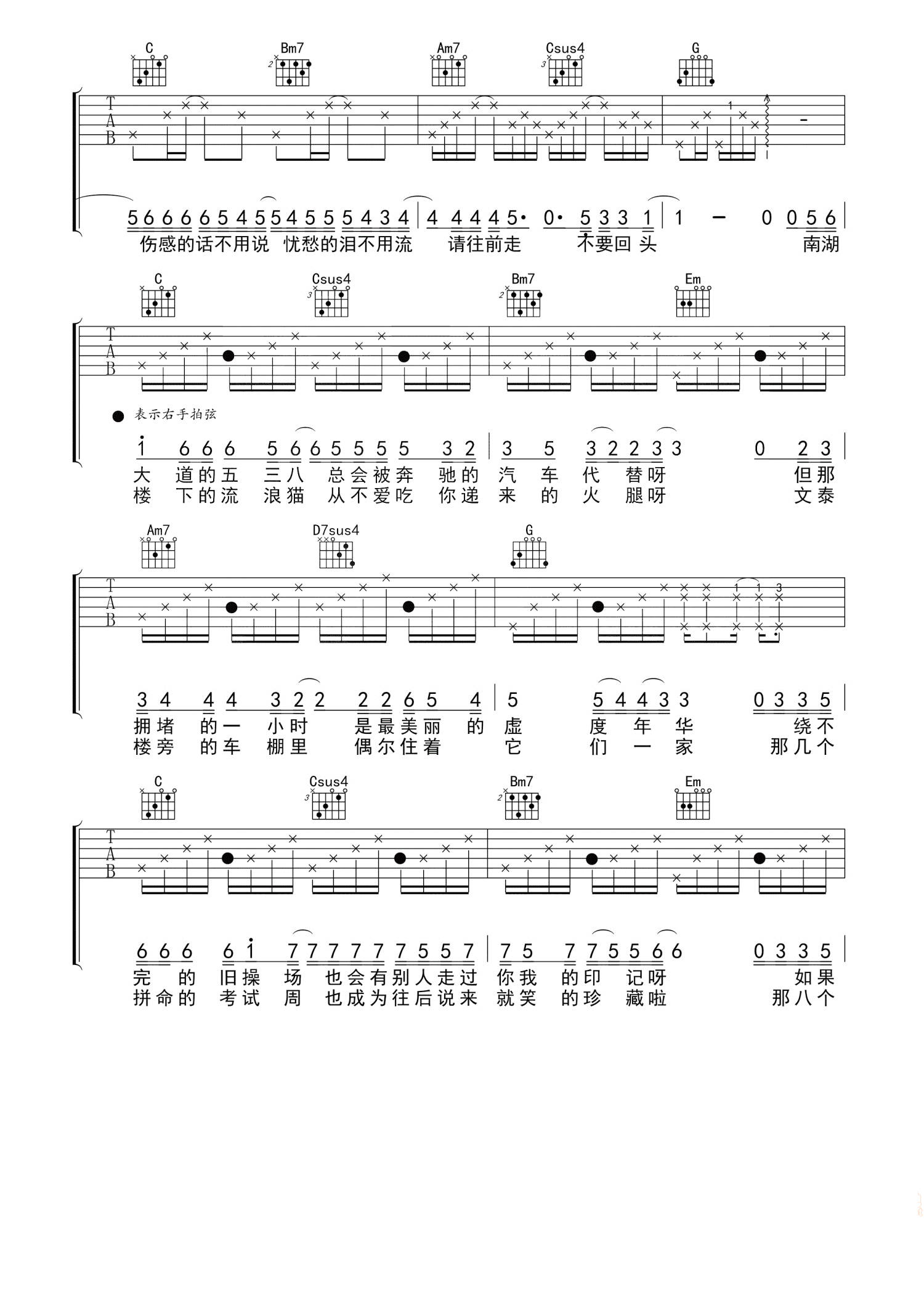 曲谱介绍: 一首好听的关于毕业季的歌曲,喜欢听这种慵懒舒散的歌声,来自于两个年轻的姑娘的文艺清澈民谣组合,好像不管离开学校多久,都会怀念曾经的校园时光,无论怎样度过都是最美丽的虚度年华,年轻时设置的种种退路若干年后也许会变成莫名其妙的障碍,不如,勇敢一点。下一站,南湖大道茶山刘。