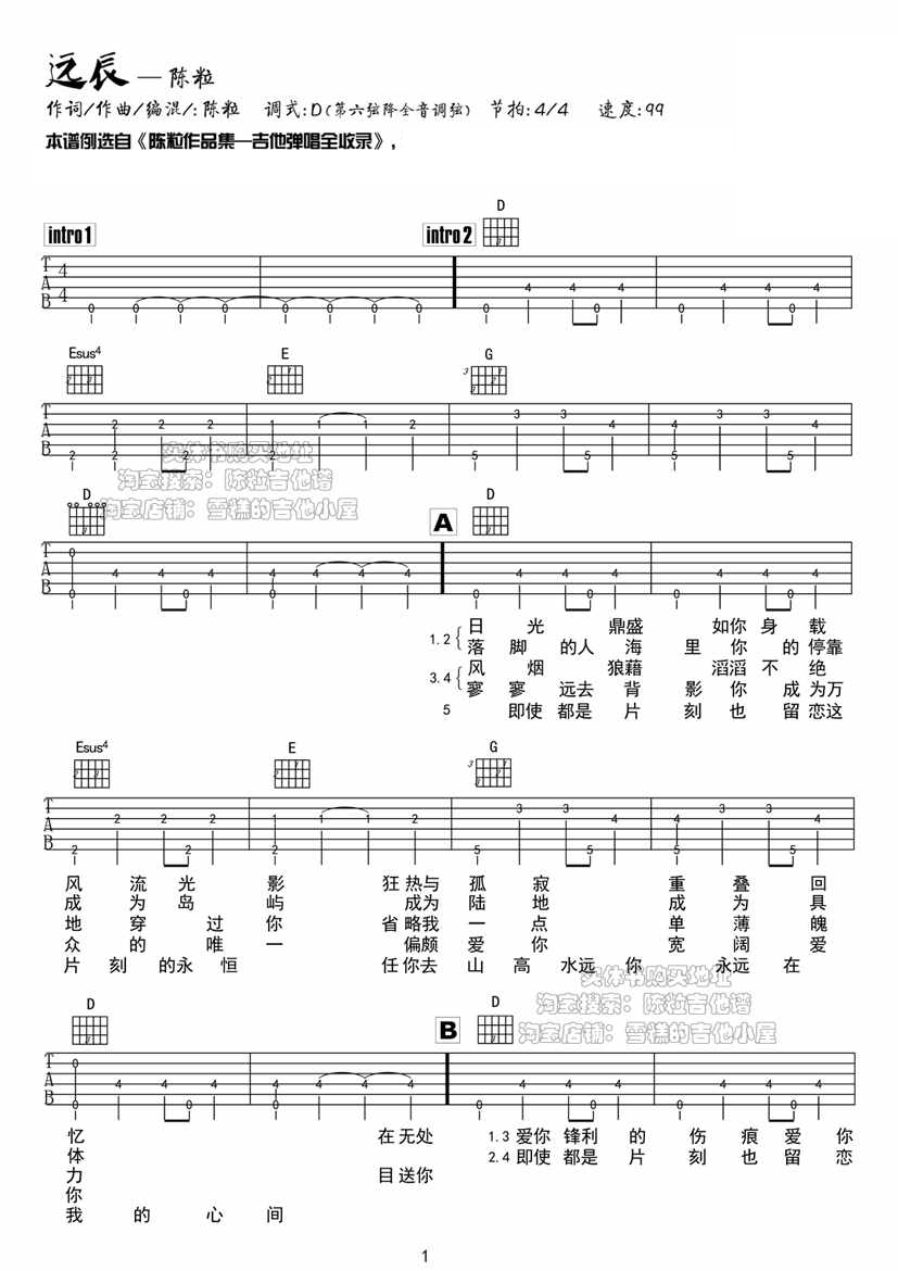 曲谱介绍: 陈粒《远辰》吉他弹唱谱,采用D调指法编配原版,共有3张高清图谱。