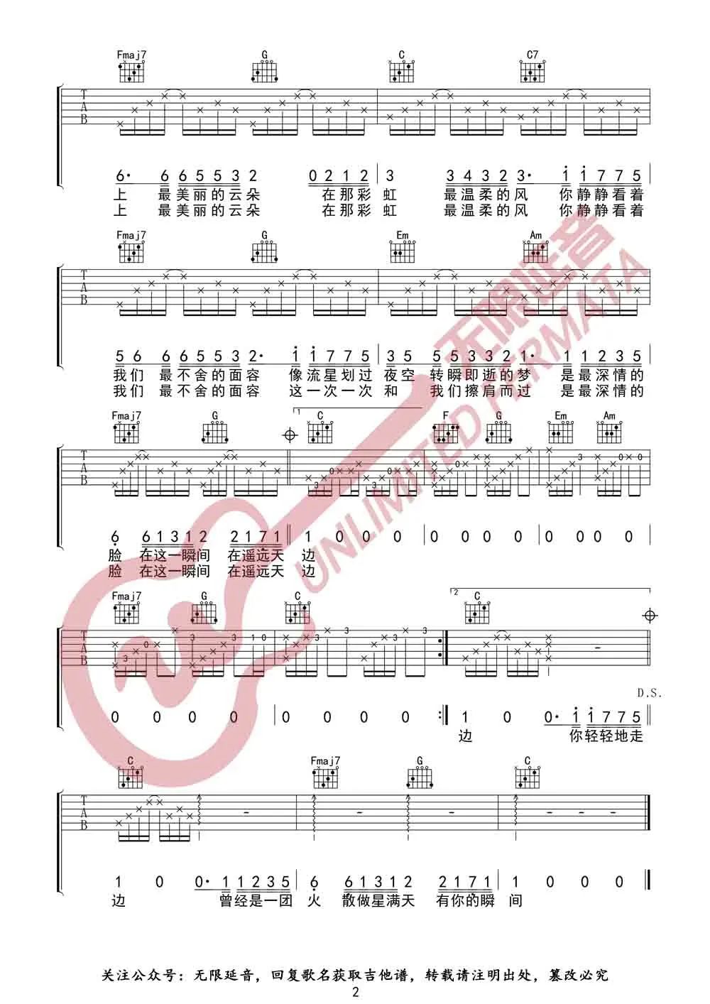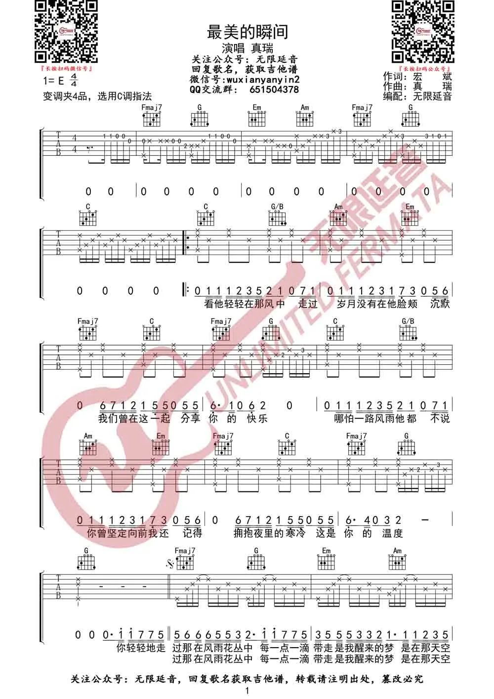 曲谱介绍: 真瑞《最美的瞬间》吉他弹唱谱,采用C调指法编配原版,共有2张高清图谱,免翻页排版设计。
