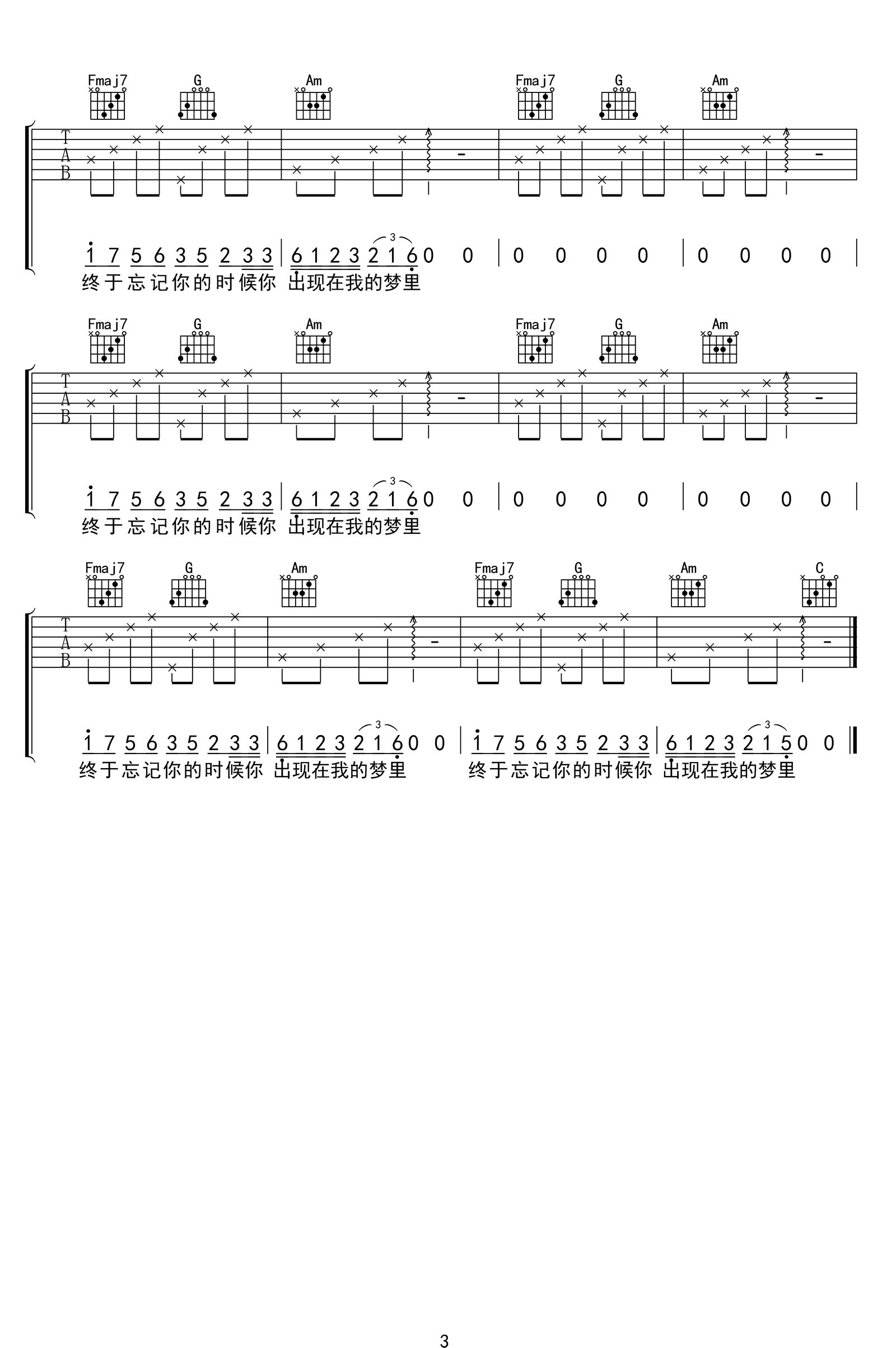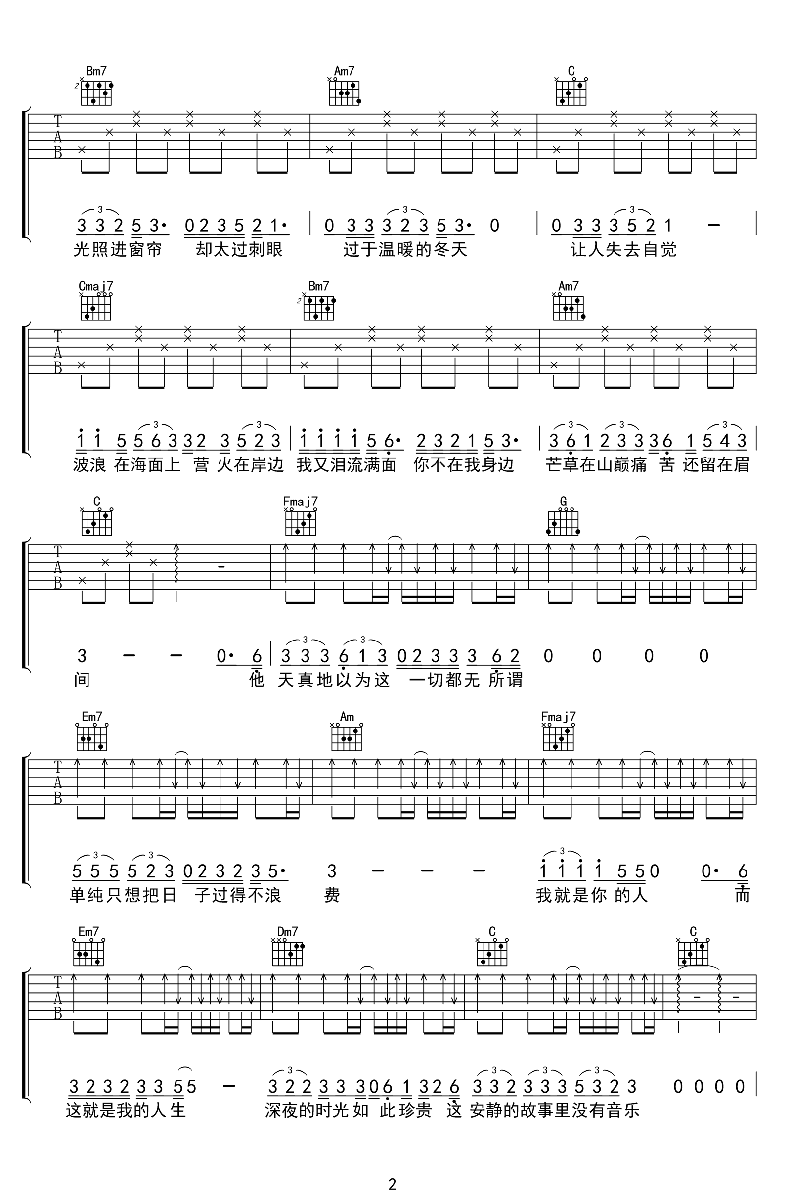 曲谱介绍: deca《浴室》吉他弹唱谱,采用C调指法编配,共有4张高清图谱。